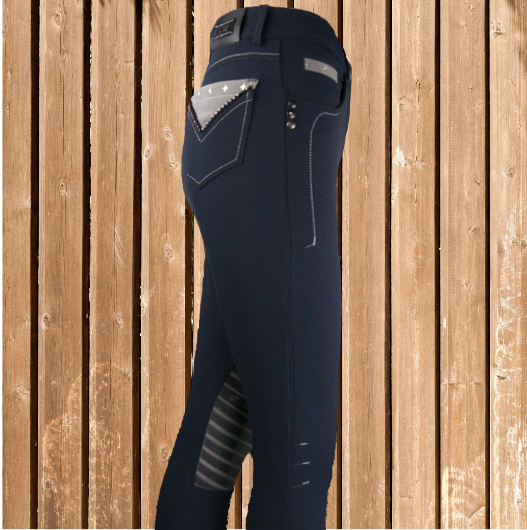 Reithose Easy Rider Dela Knee Grip, navy, Reithose mit Knie Grip Besatz