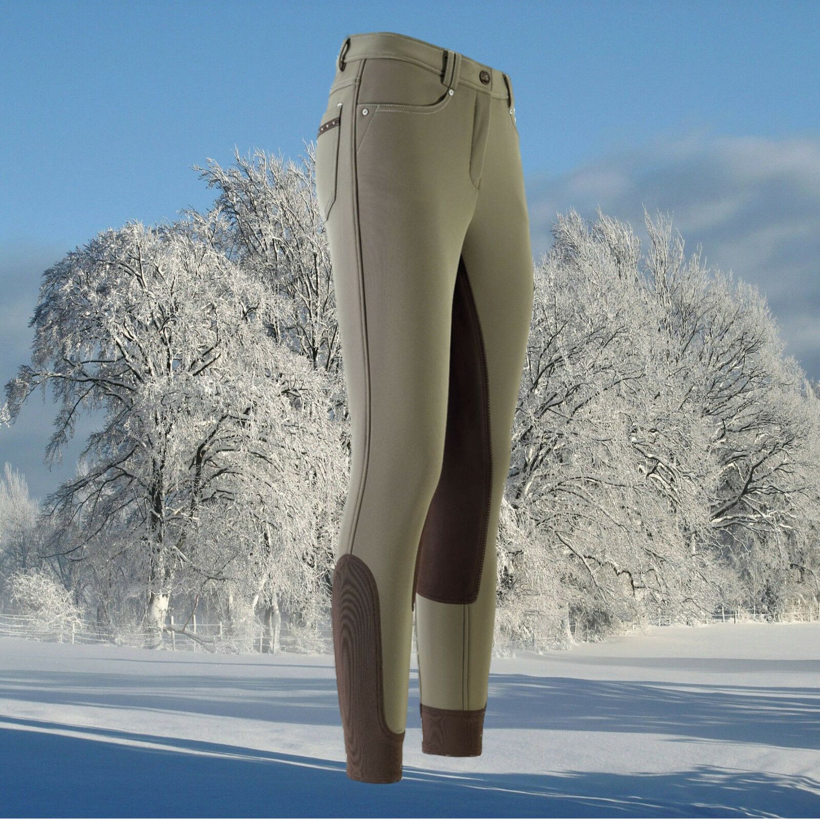 Reithose Euro Star Laura Softshell Full, Softshell Reithose mit Strass, khaki