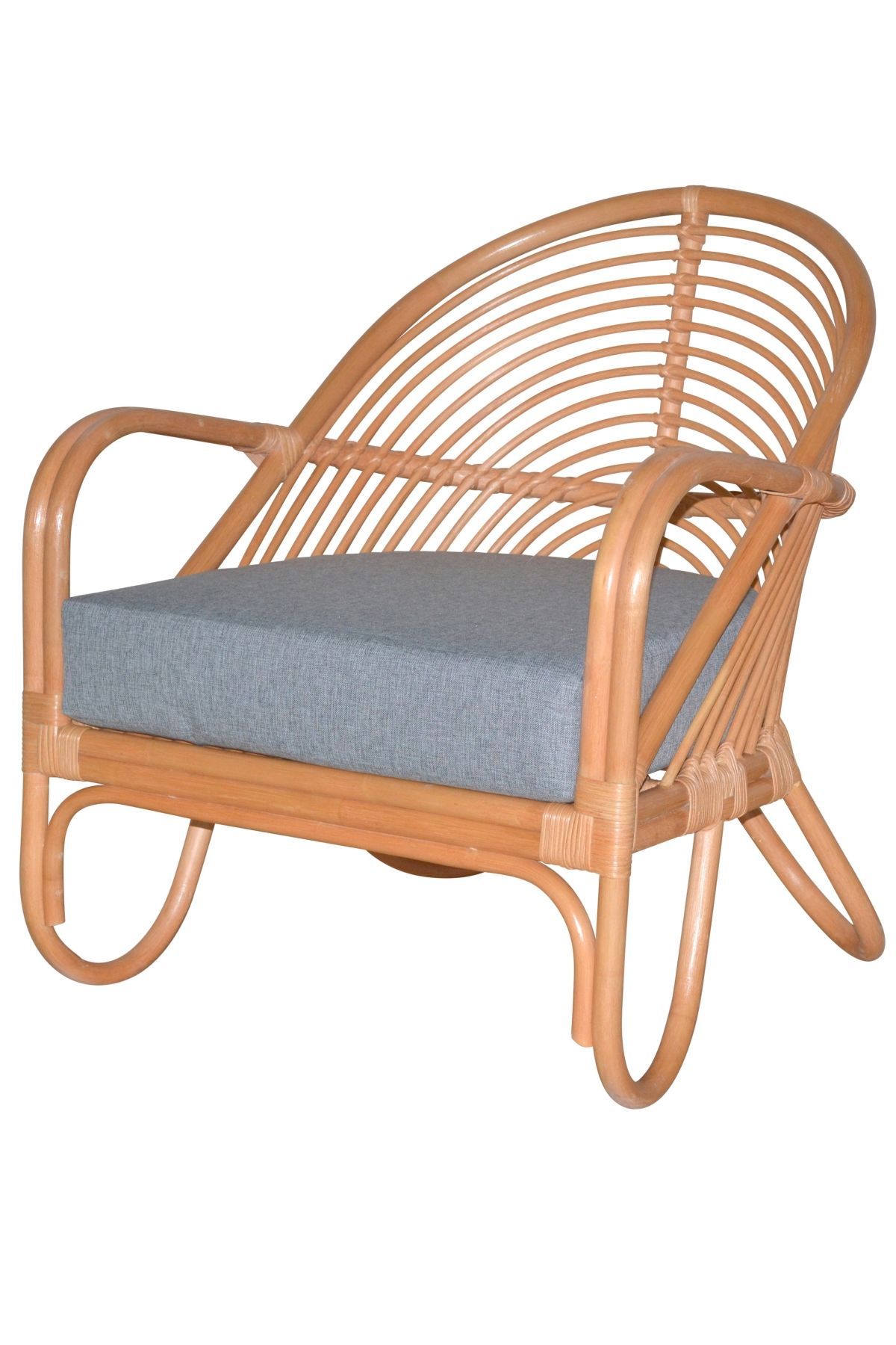 Relax-Sessel aus Rattan handgeflochten, honigfarben gebeizt, inkl. Kissen