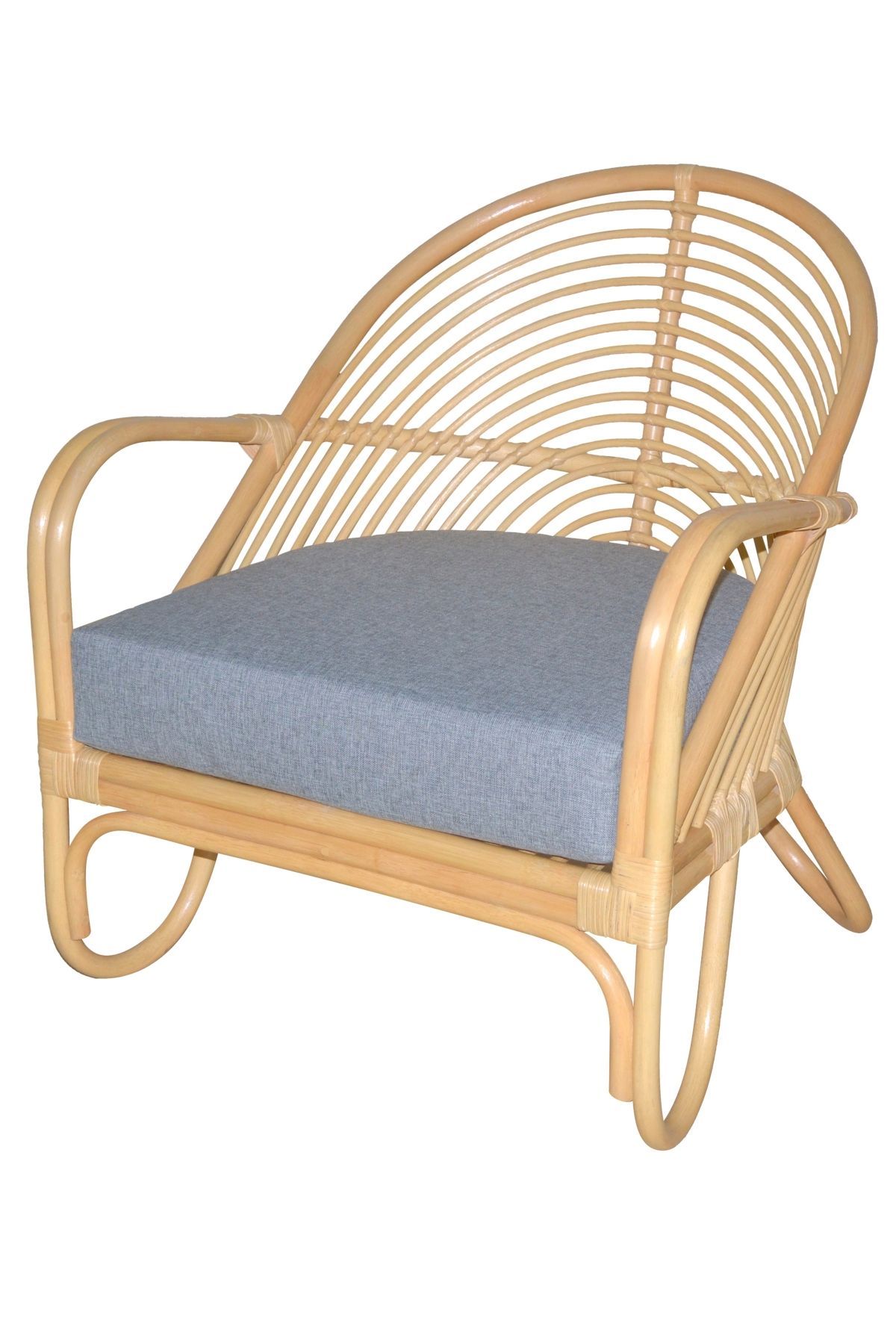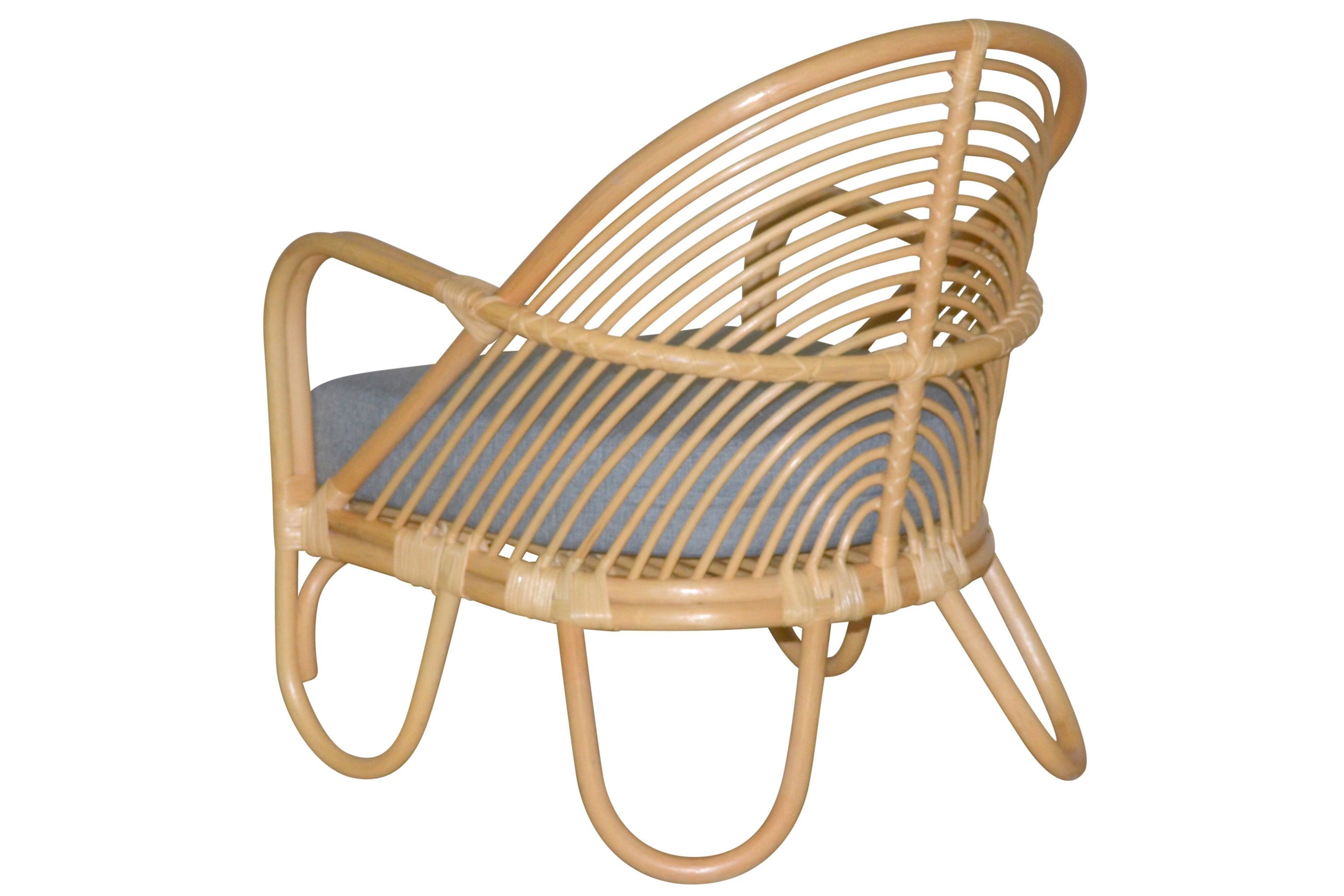 Relax-Sessel aus Rattan handgeflochten, naturfarben gebeizt, inkl. Kissen