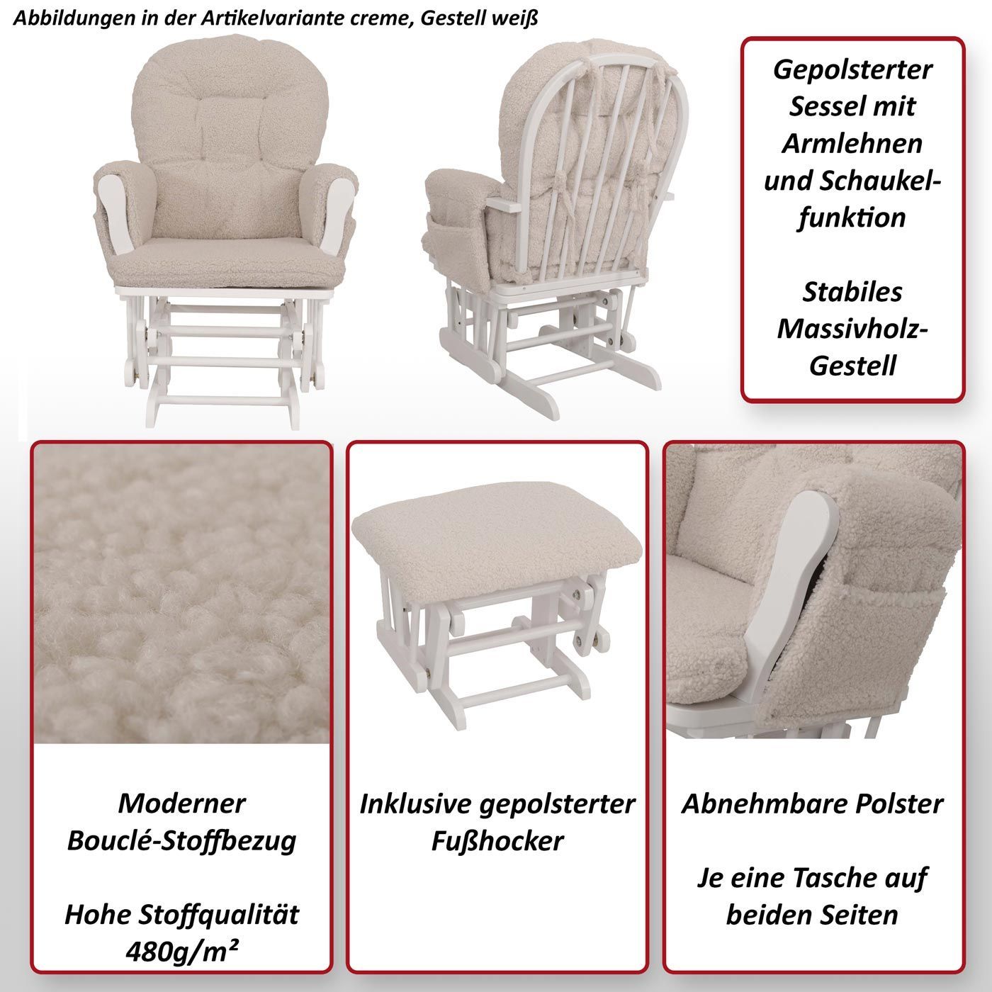 Mendler Relaxsessel HWC-C76, Schaukelstuhl Sessel + Hocker Stoff Bouclé 480g/m² Öko-Tex