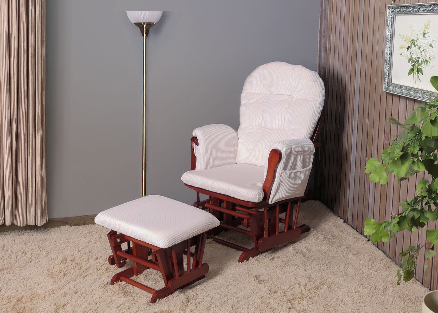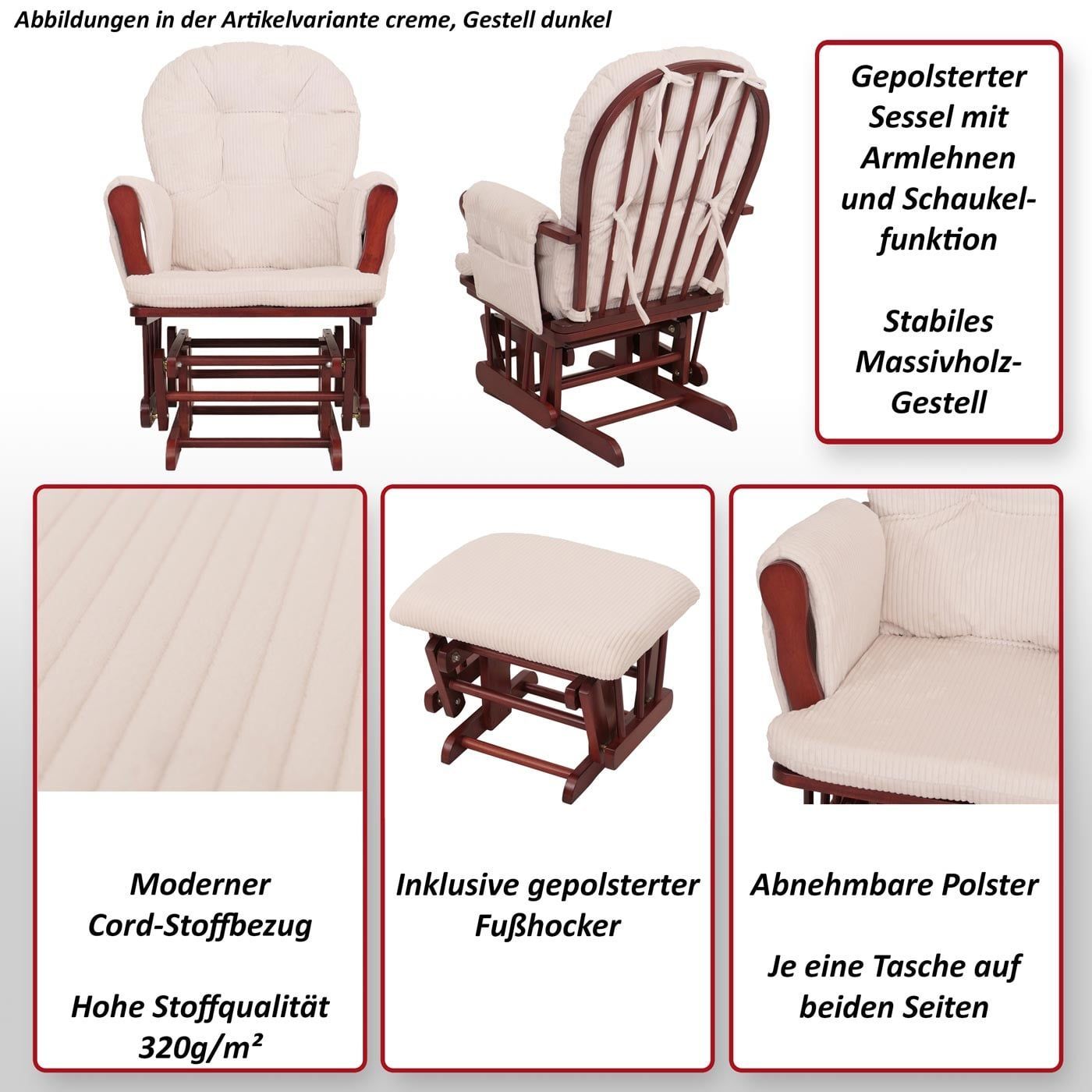 Mendler Relaxsessel HWC-C76, Schaukelstuhl Sessel mit Hocker Stoff Cord 320g/m² Öko-Tex