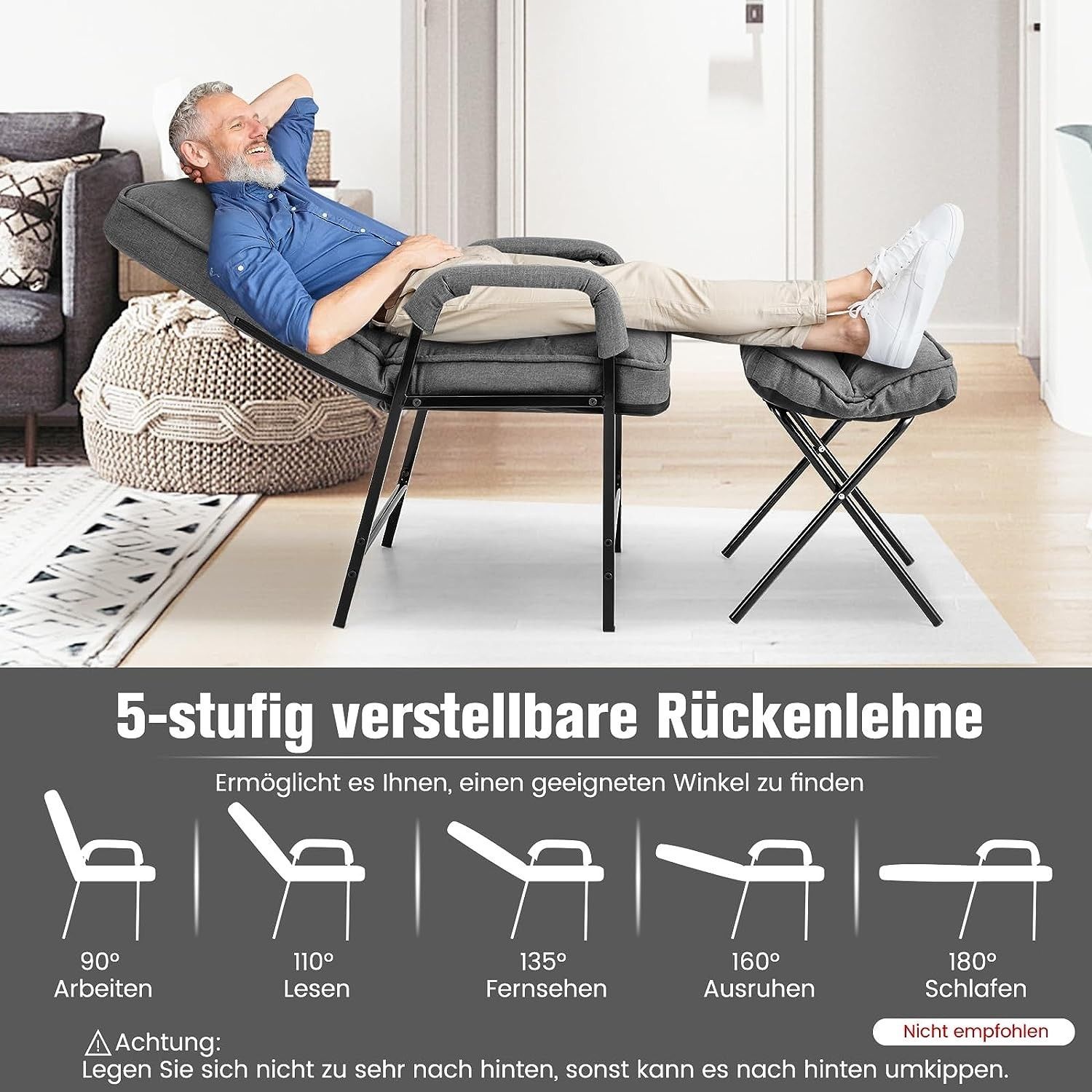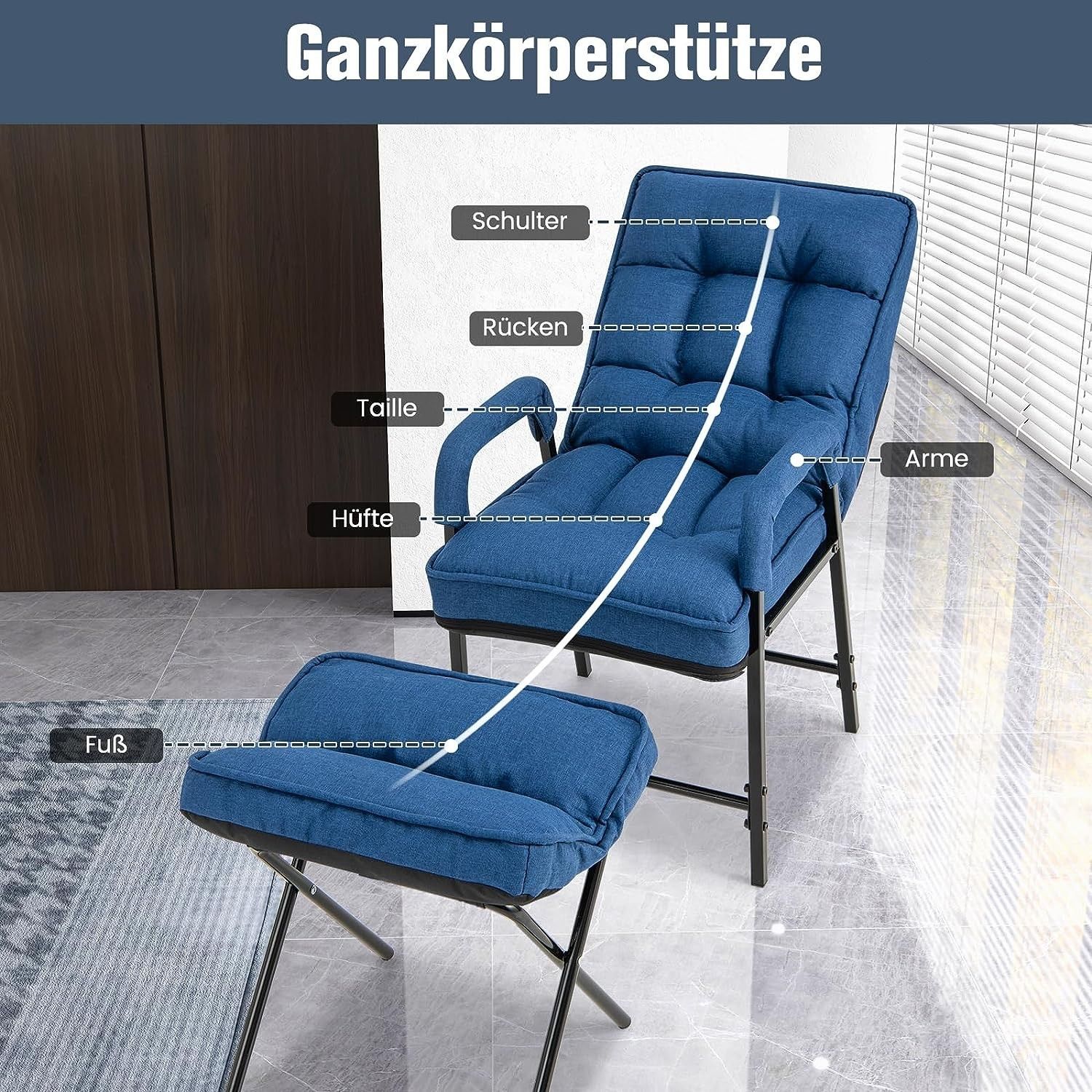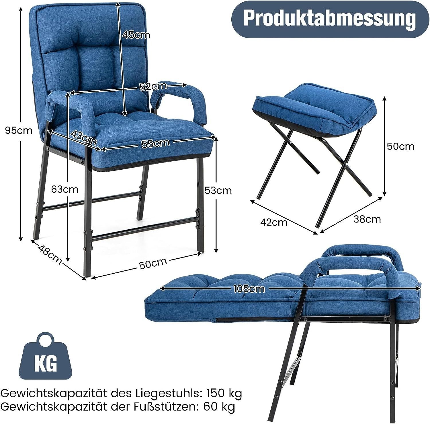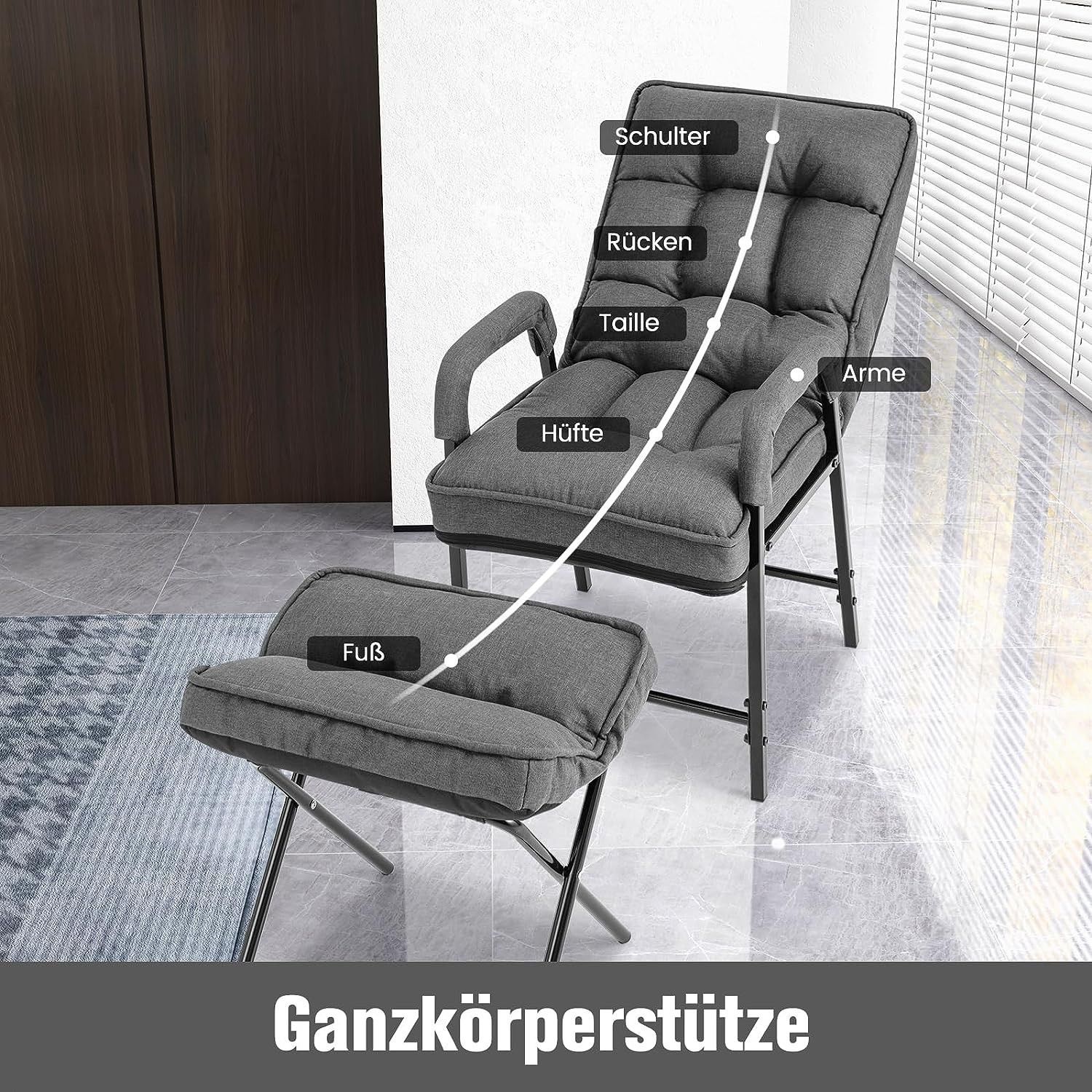 Relaxsessel Schlafsessel mit 5 Stufen Verstellbarer Rückenlehne & Fußhocker