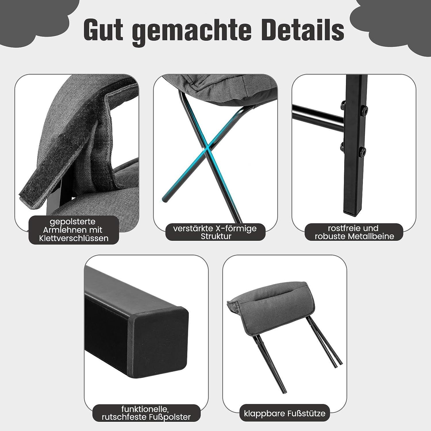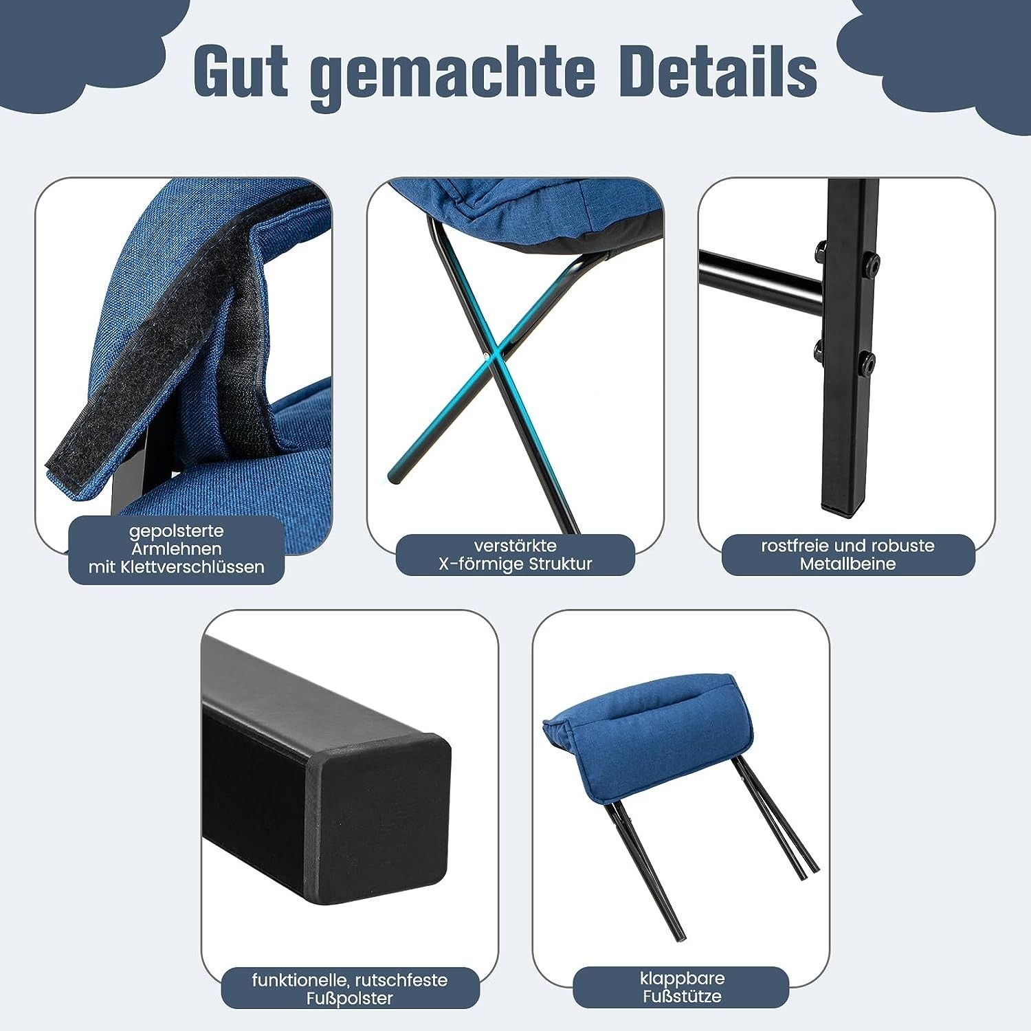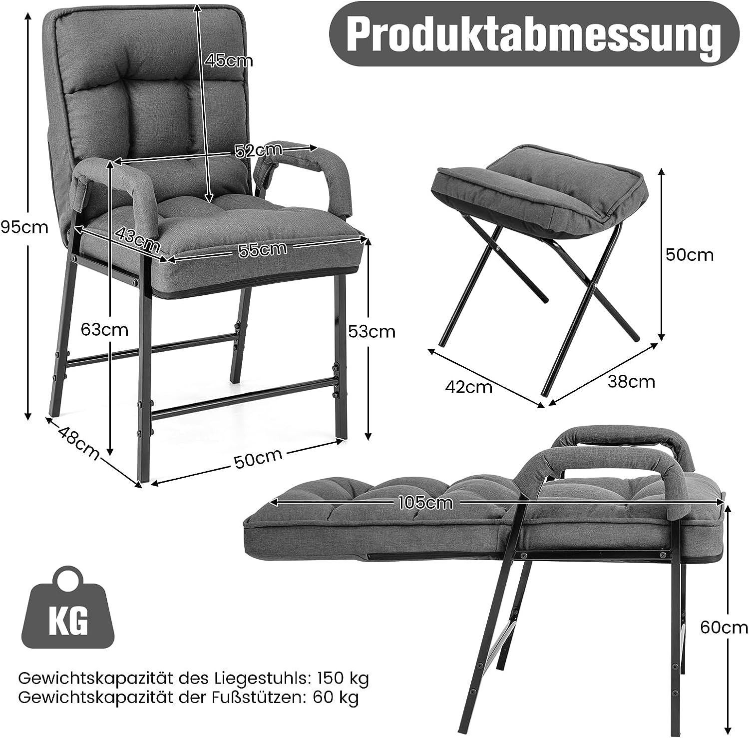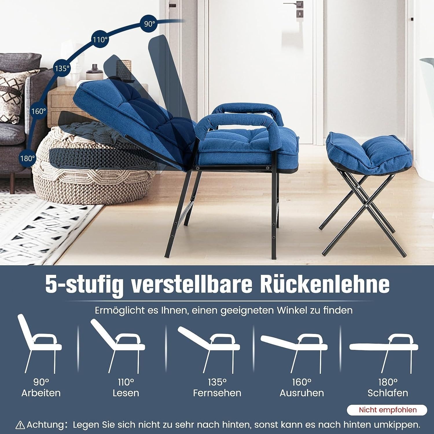 Relaxsessel Schlafsessel mit 5 Stufen Verstellbarer Rückenlehne & Fußhocker
