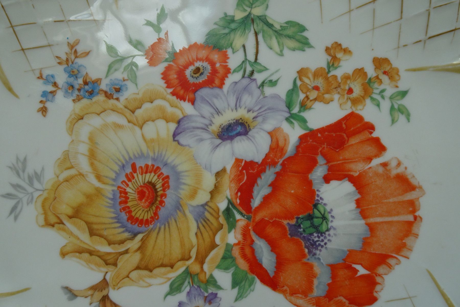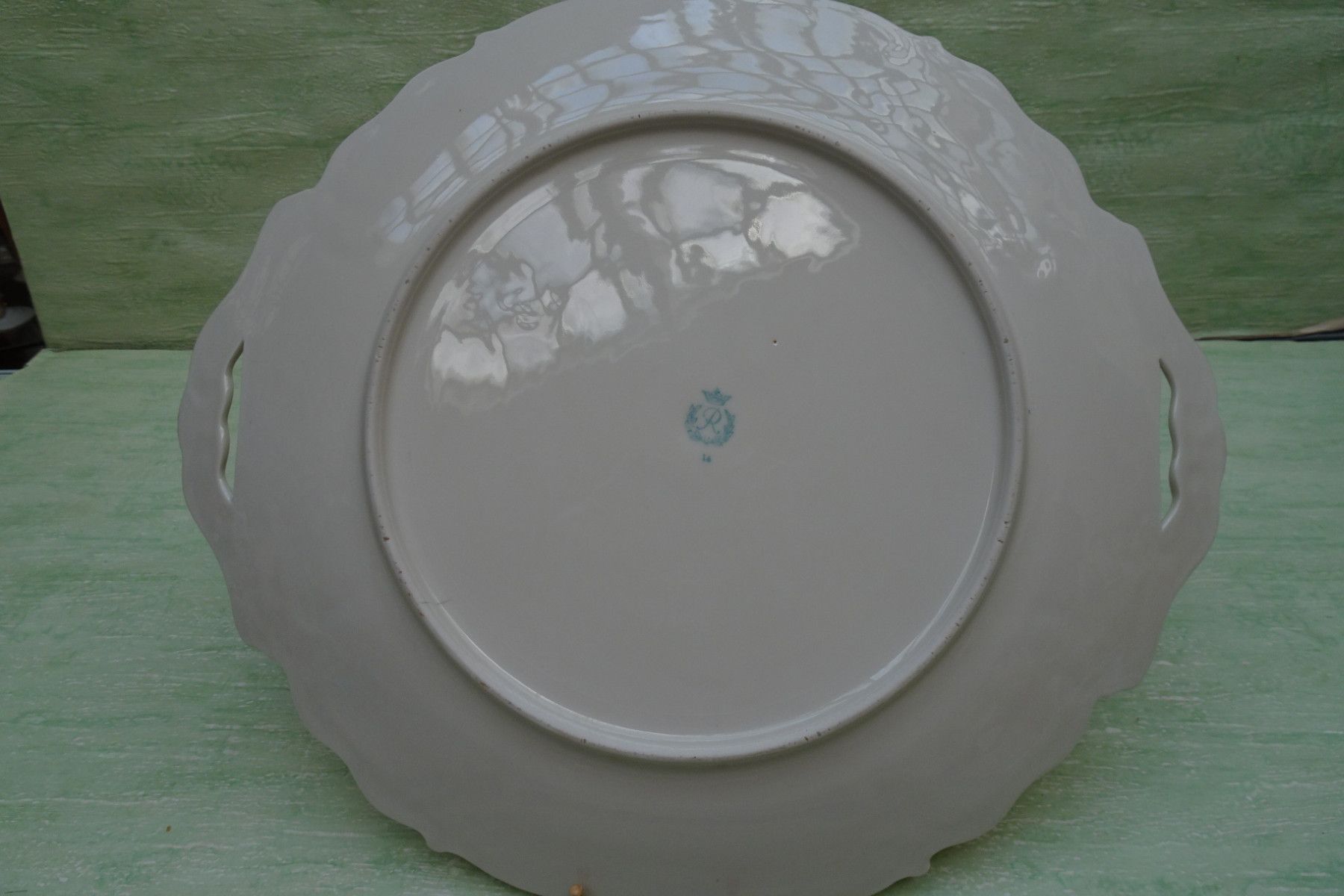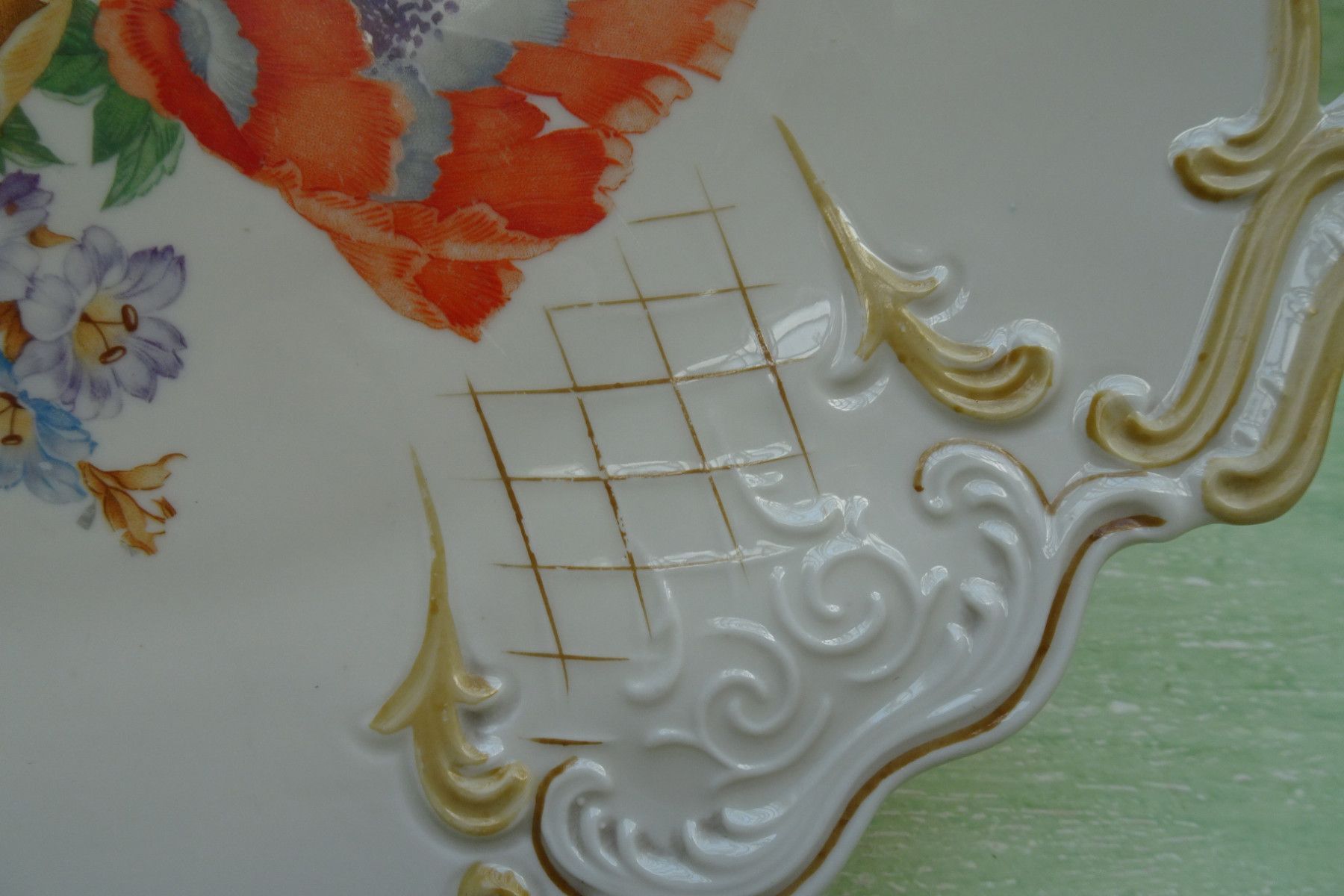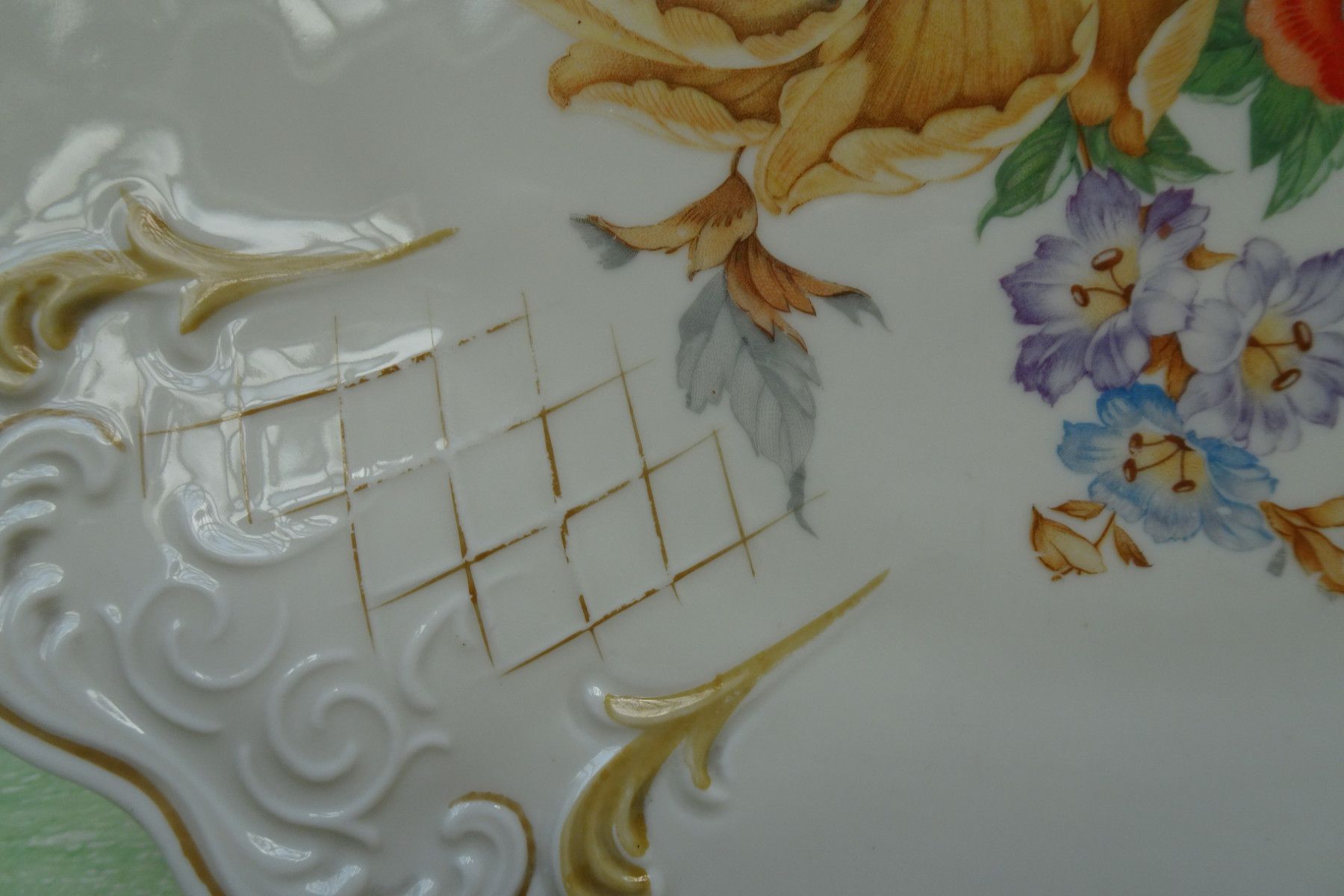 Reliefschale Teller Platte mit Griff Henkel Carstens Thüringen Blumendekor 34x29cm