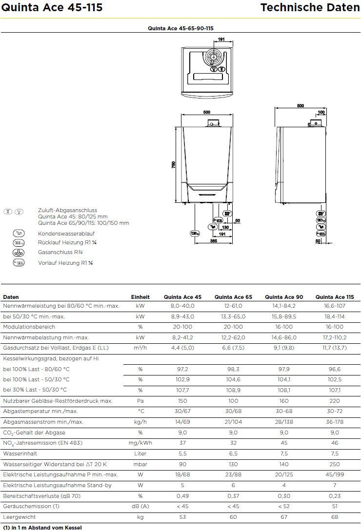 Remeha Gas Brennwert Wandheizkessel Quinta 115 109,7 kW 7844280 Gasheizung
