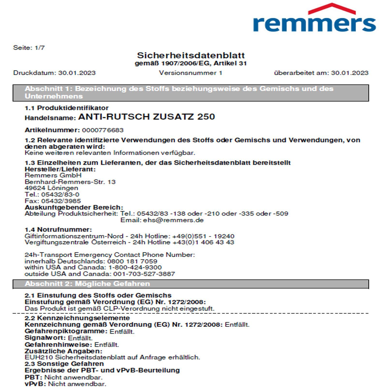 Remmers Anti-Rutsch Zusatz 250 Rutschhemmung Klasse R12 Polymergranulat 0.25 KG