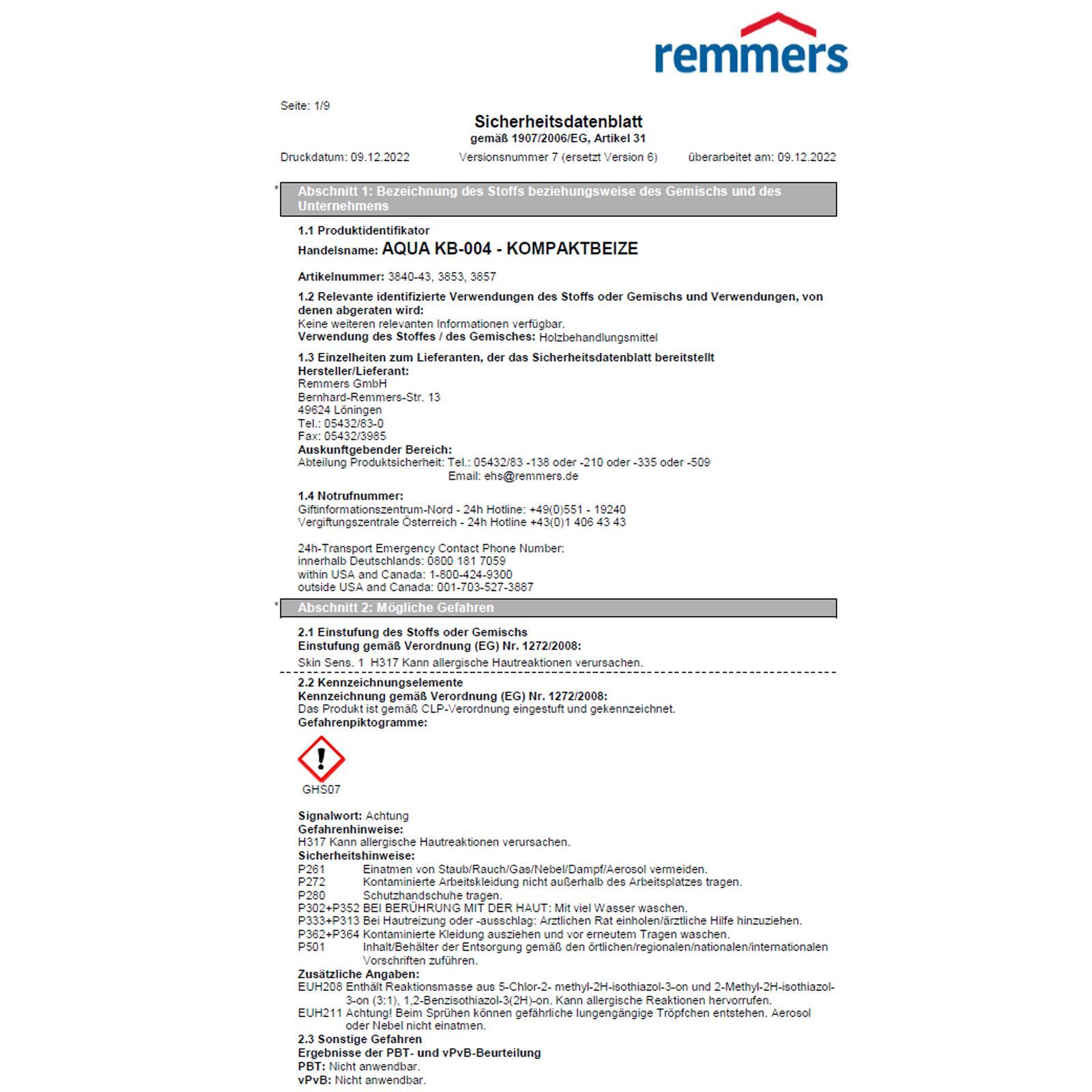 Remmers Aqua KB-004 Kompaktbeize Beizenkonzentrat Beize 1L Sonderton Farbwahl