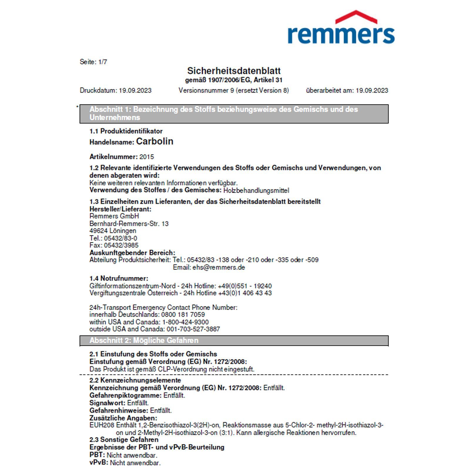 Remmers Carbolin Holzlasur Zaunlasur 5L Holzschutzmittel UV-Schutz teerölfrei