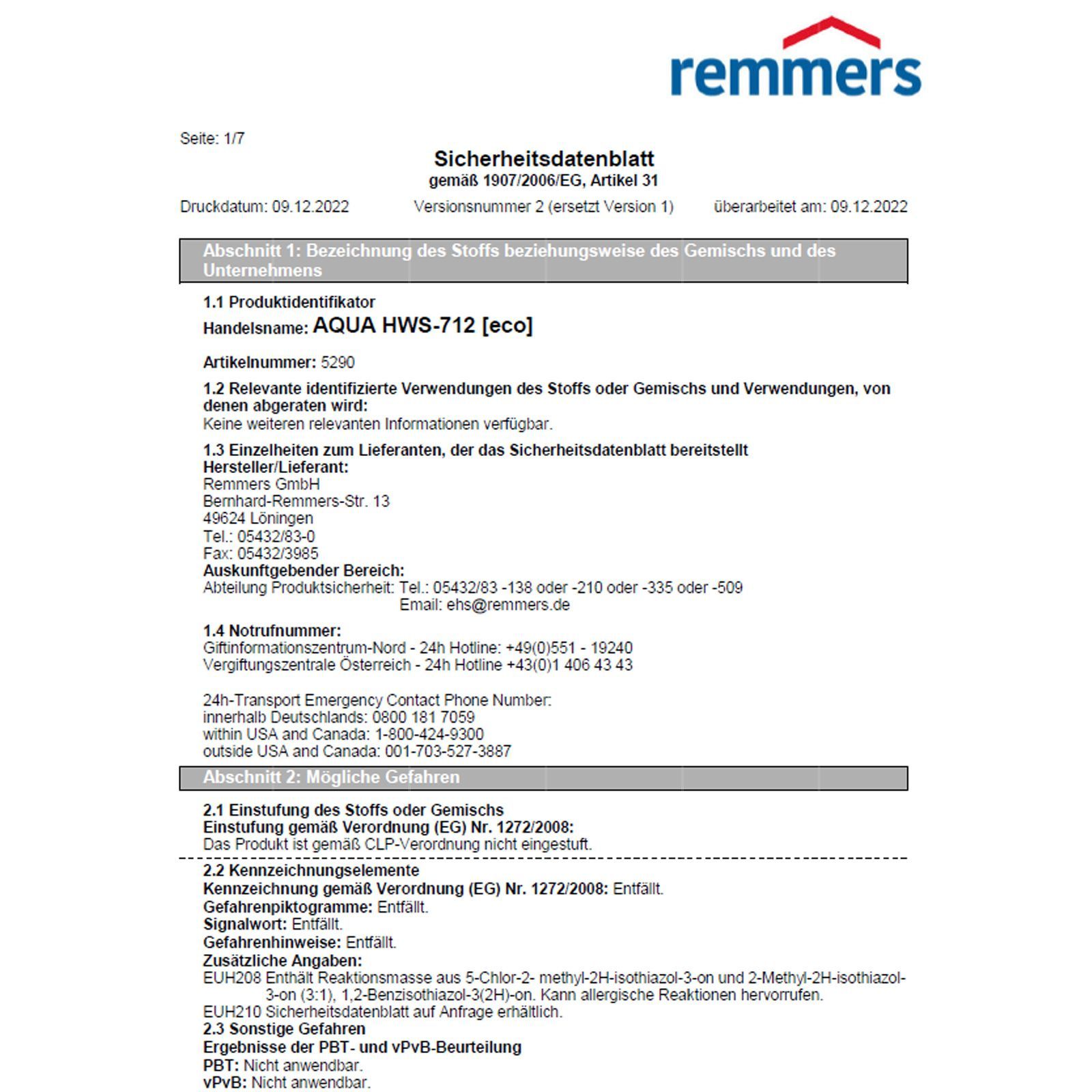 Remmers ECO AQUA HWS-712 20 LTR Hartwachs-Siegel 1K-Versiegelung Holz Innen