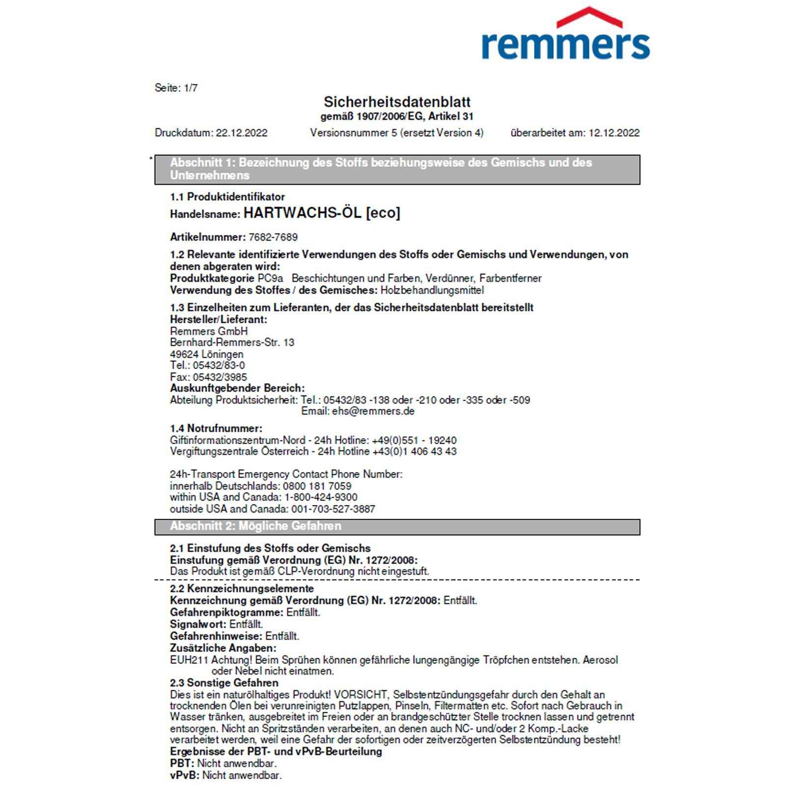 Remmers ECO Hartwachs-Öl Bodenöl Möbel-Öl Hartwachs-Öl Holz-Öl Farbwahl 0.375L