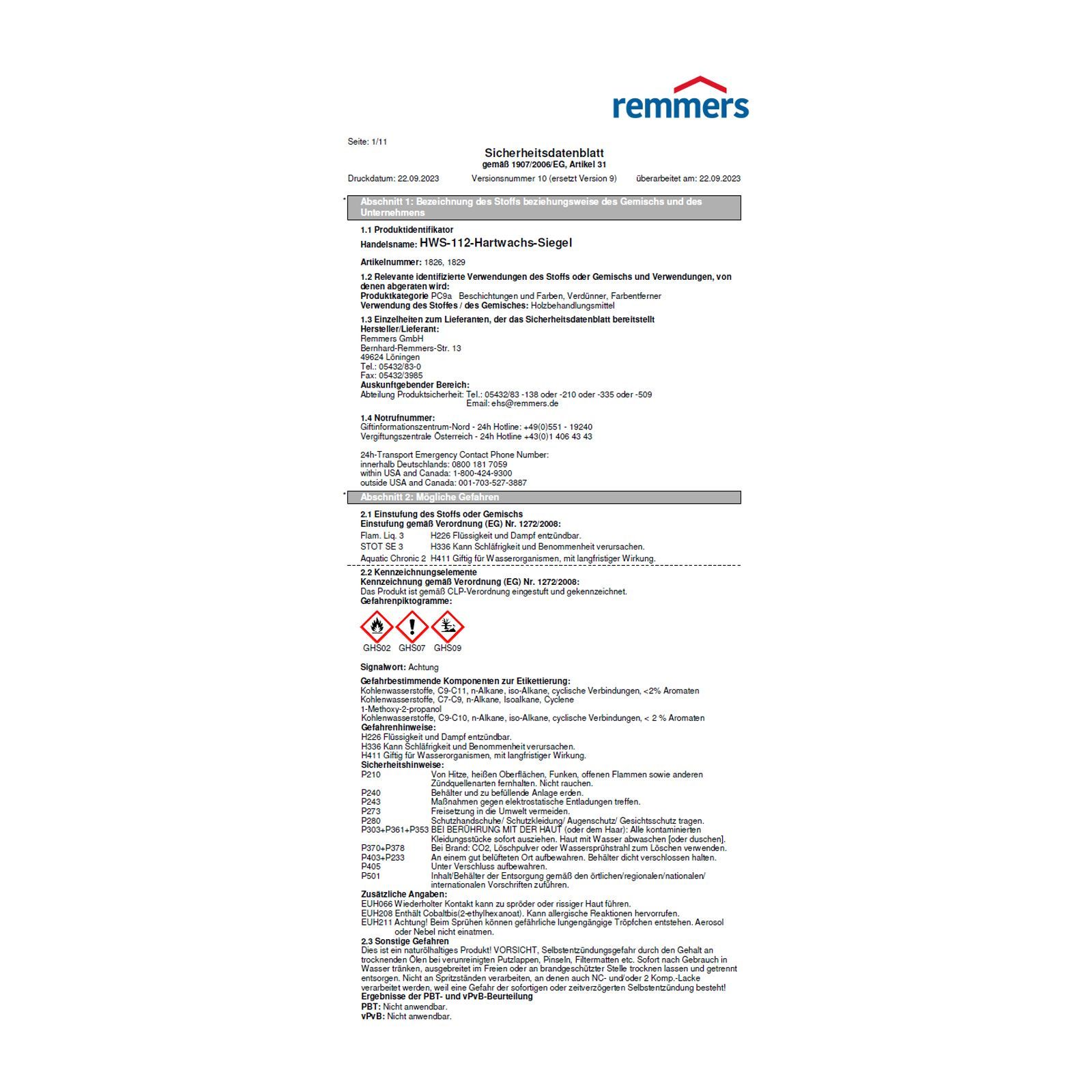 Remmers HWS-112 Hartwachs-siegel 20 LTR 1K-Versiegelung Holzschutz Sonderton