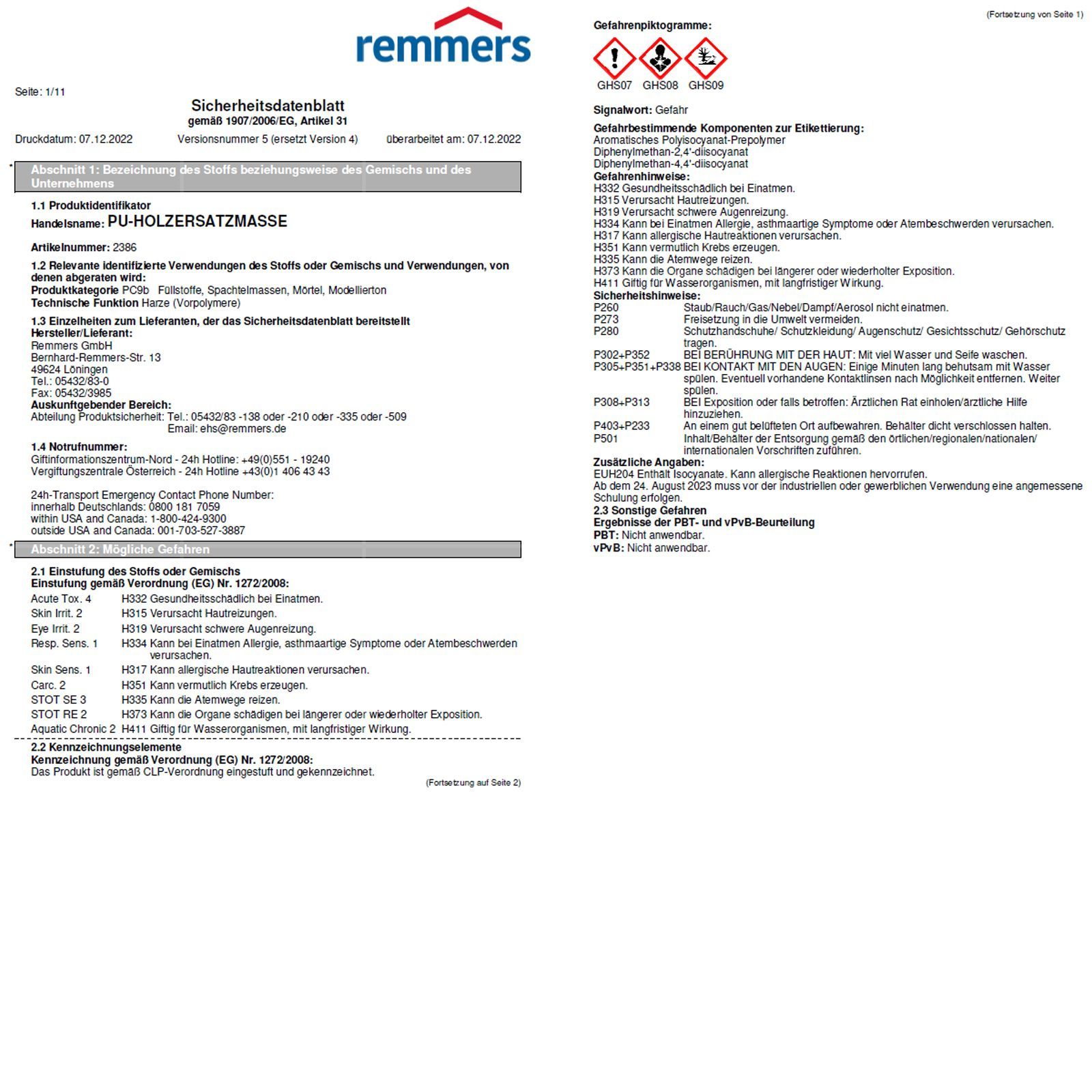 • Kann bei Einatmen Allergie, asthmaartige Symptome oder Atembeschwerden verursachen