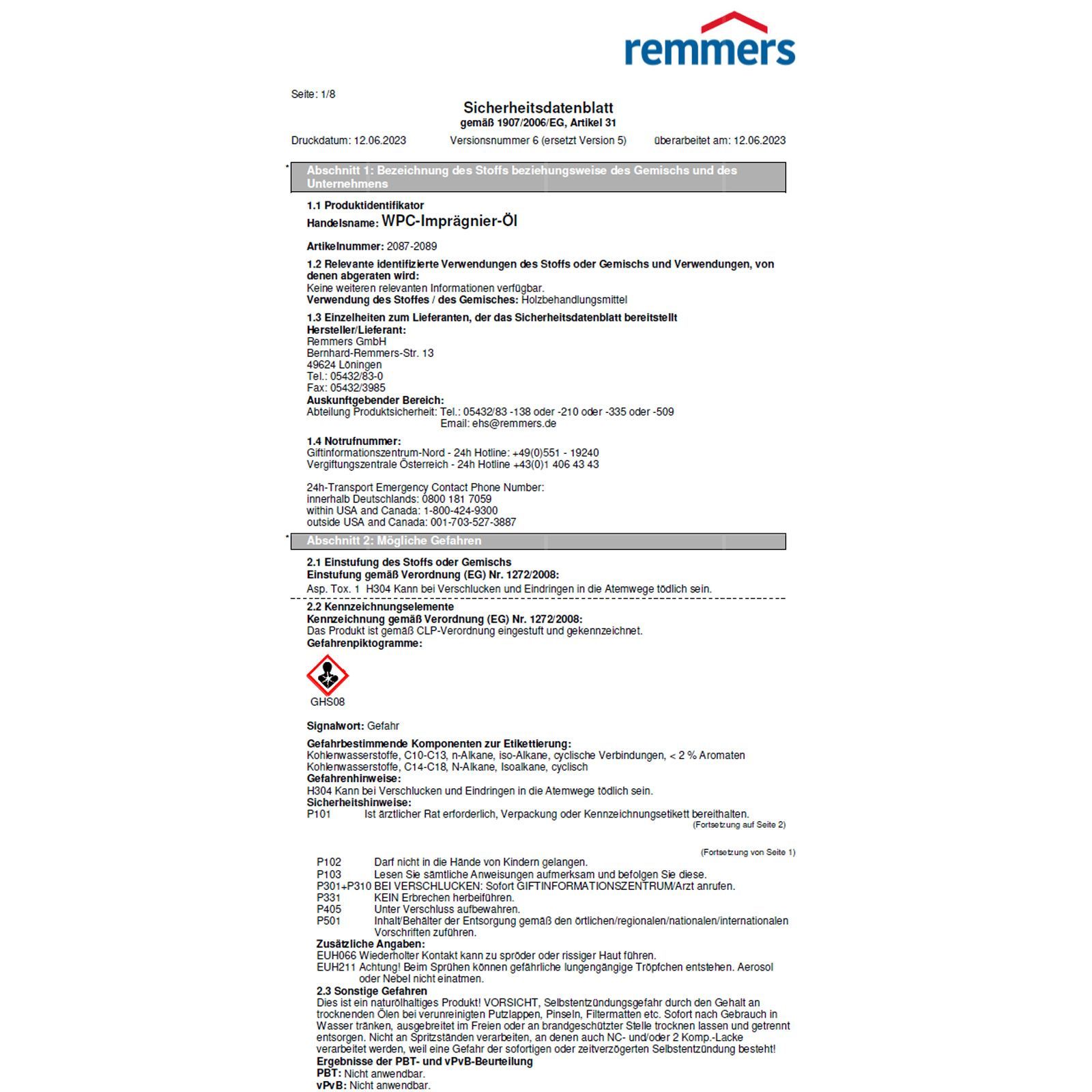 Remmers WPC-Imprägnier-ÖL - 2.5 L Holzöl Terrassenöl Schmutzabweisend Farbwahl