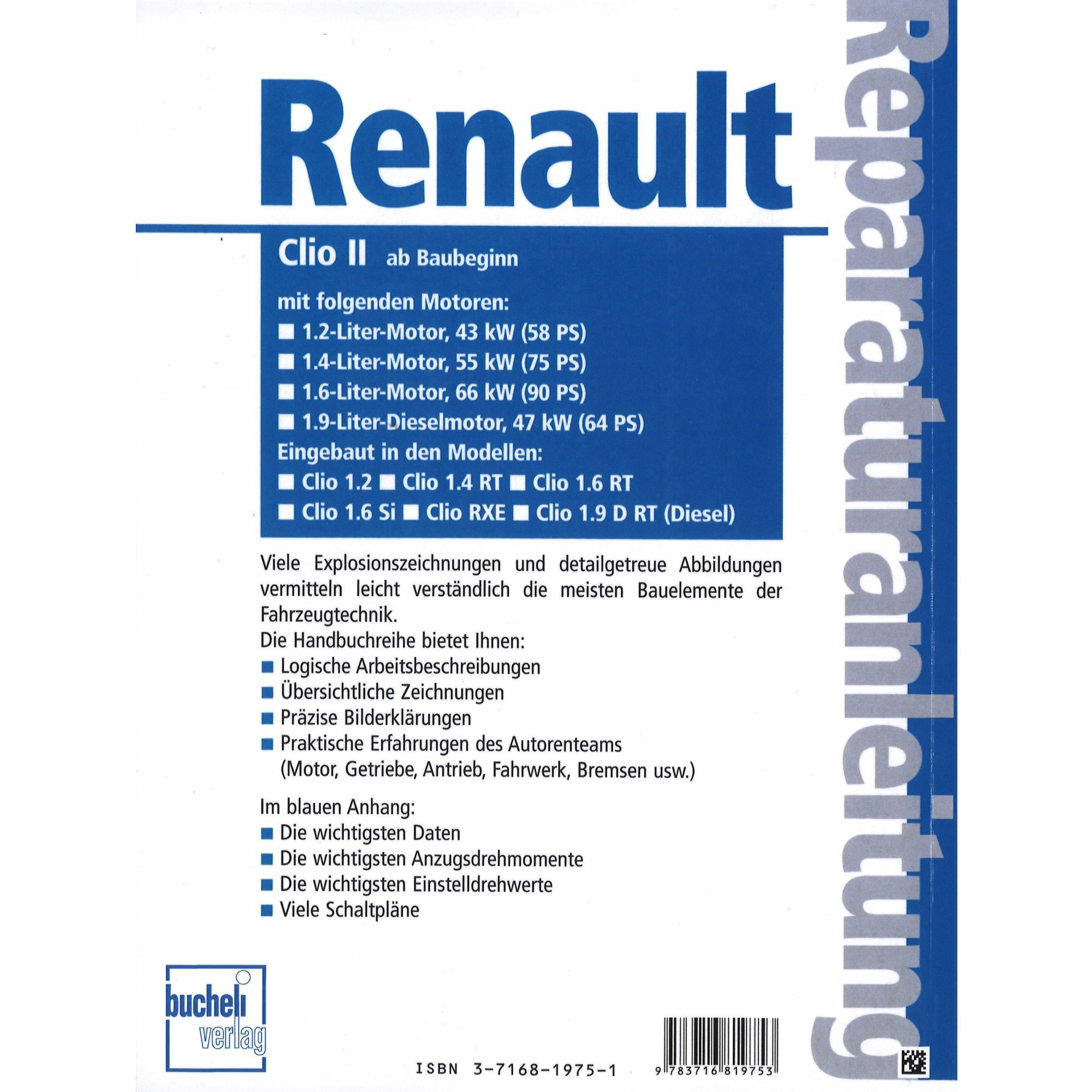 Renault Clio II Typ B 1998-2004 Reparaturanleitung/Handbuch Bucheli Verlag