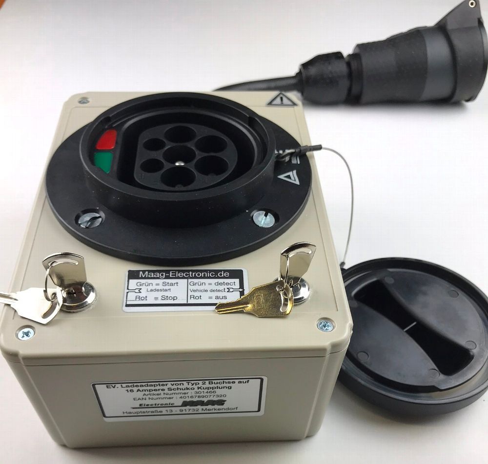 Renault Twizy Ladeadapter 16 A / 1 Phase / Typ 2 Einbaudose auf Schuko Adapter