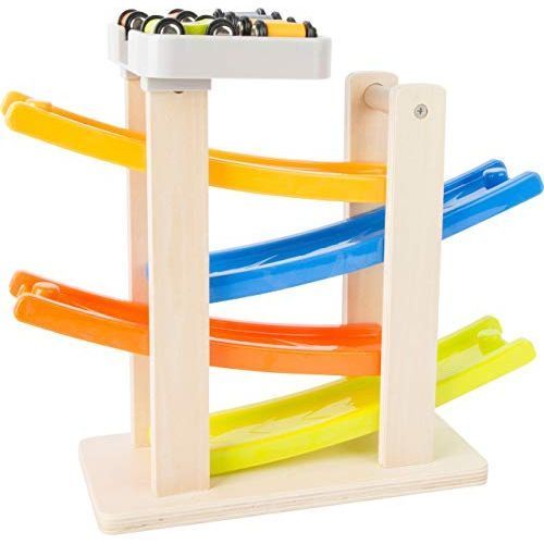 Rennbahn mit Parkdeck aus Holz â?? personalisierbar, inkl. 4 Autos | small foot 10602