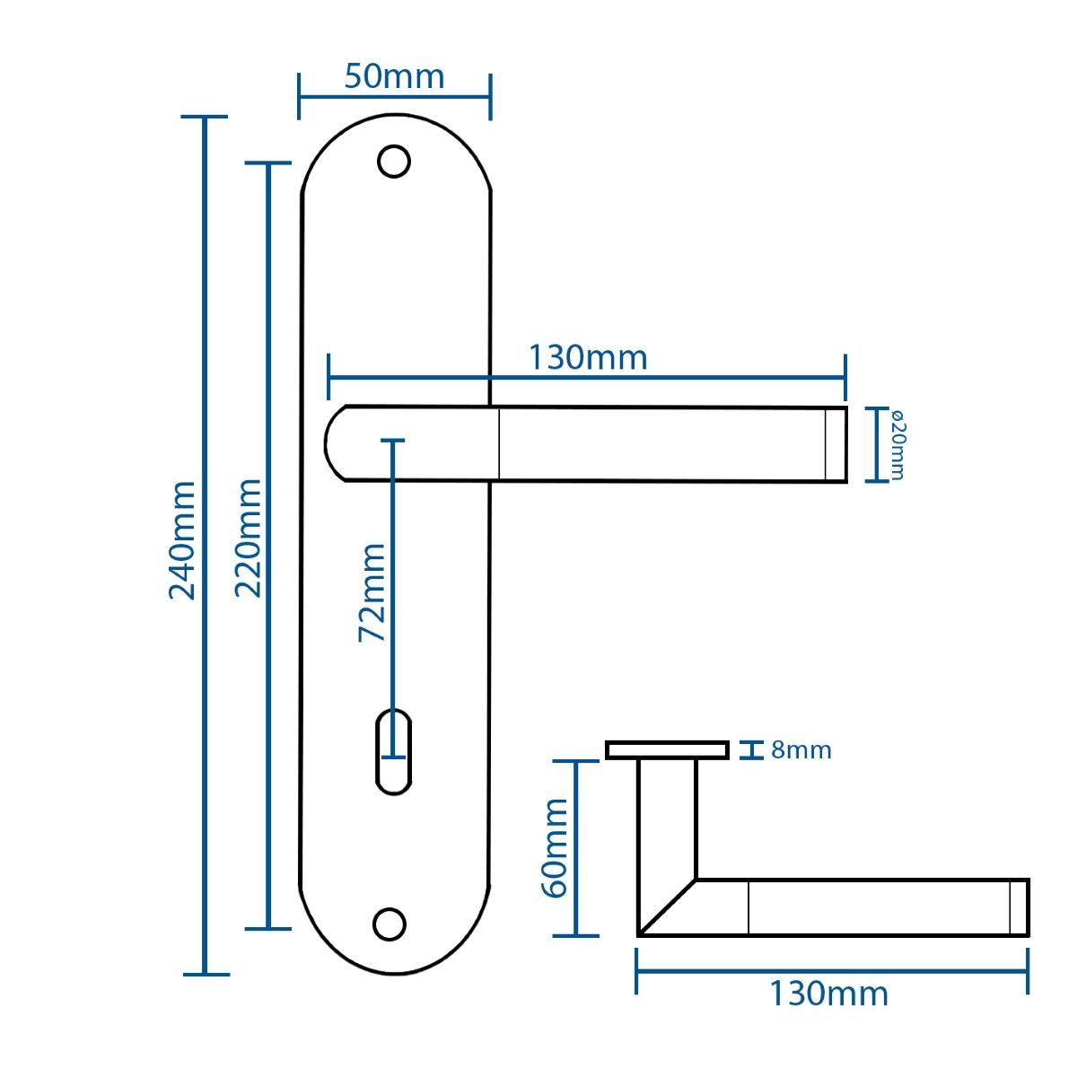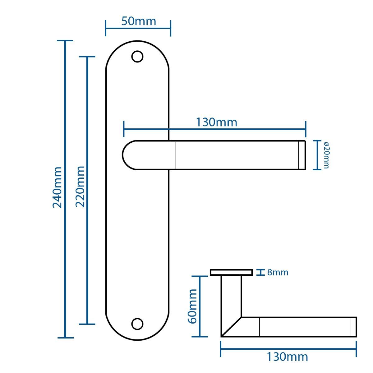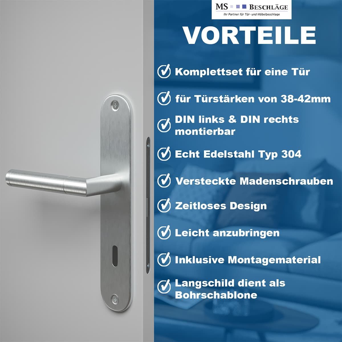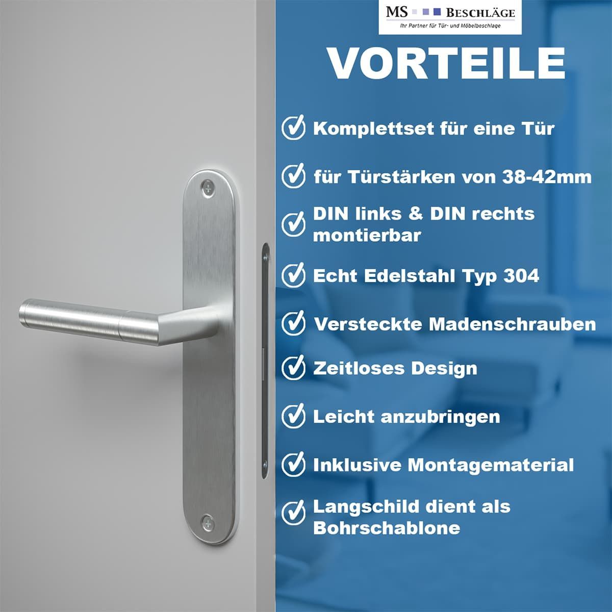 Renovierungsgarnitur Edelstahl – Langschild Türbeschlag 240x50mm - Türgarnitur