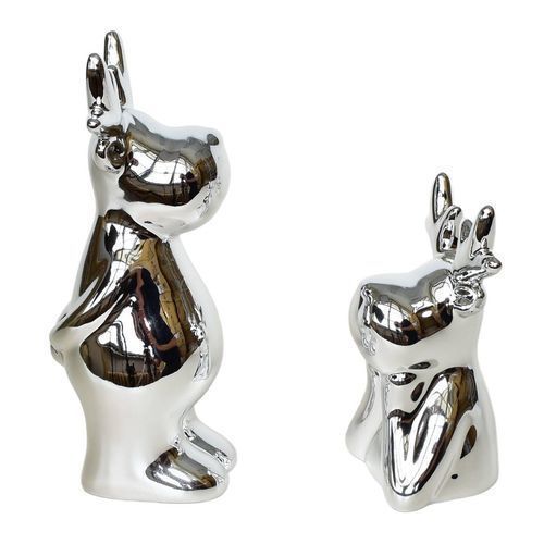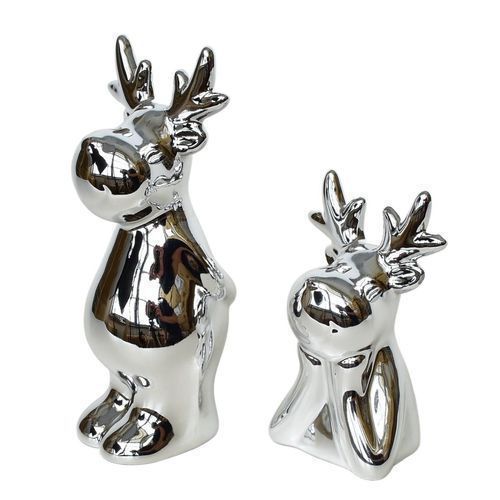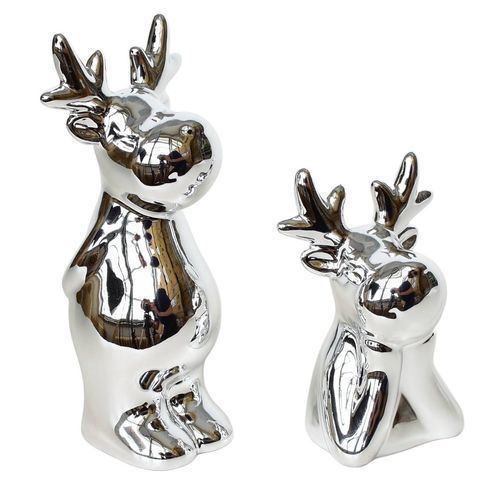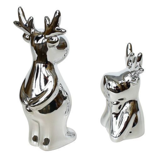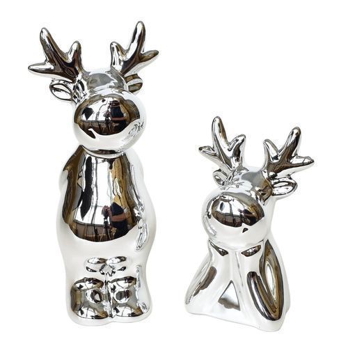 Rentier mit Rentier, Keramik, silber, 16 und 11 cm, 2er-Set