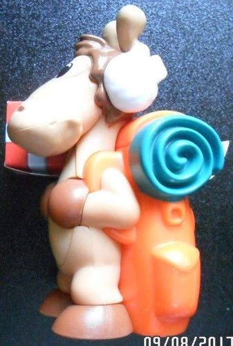 Rentier mit Rucksack und Aufklebern