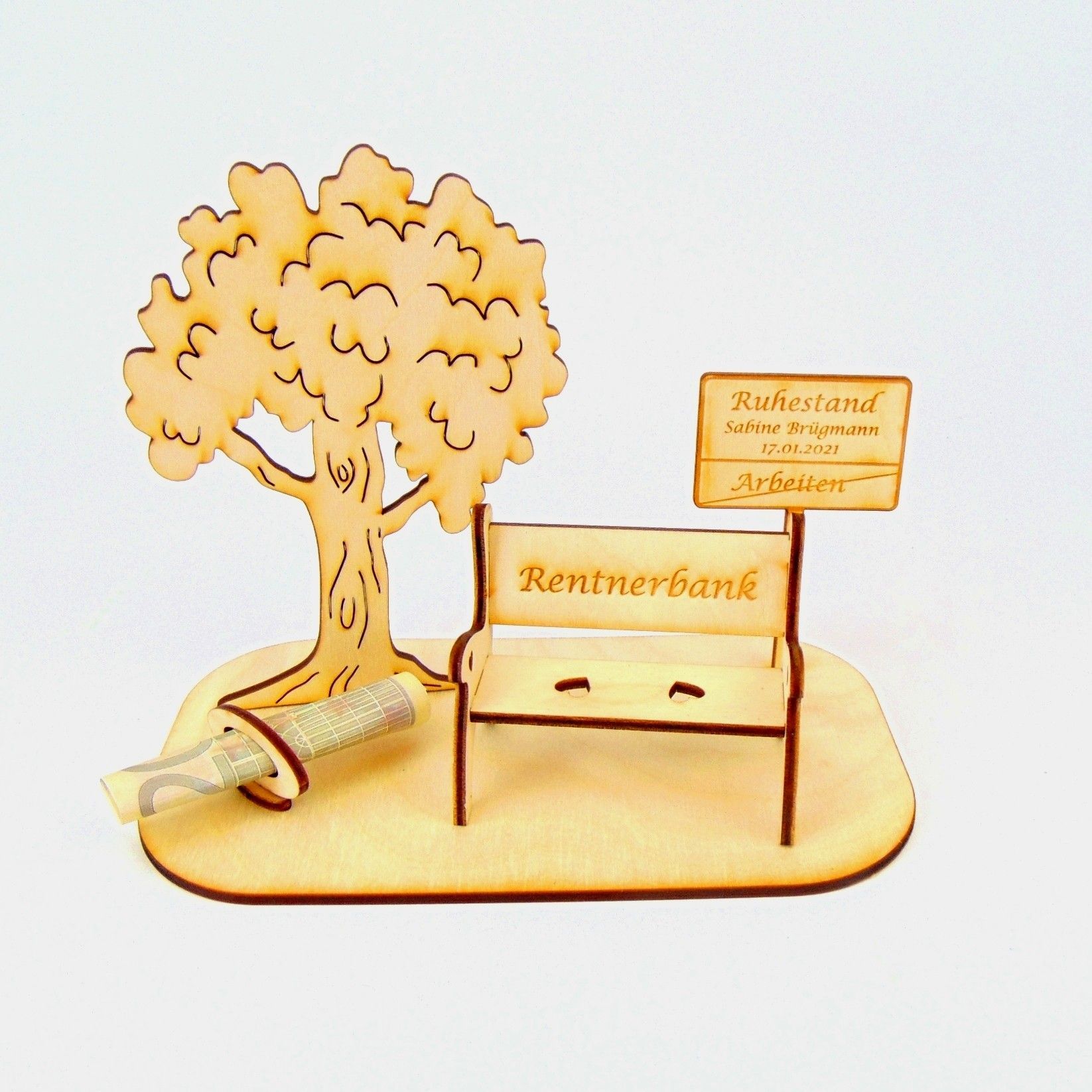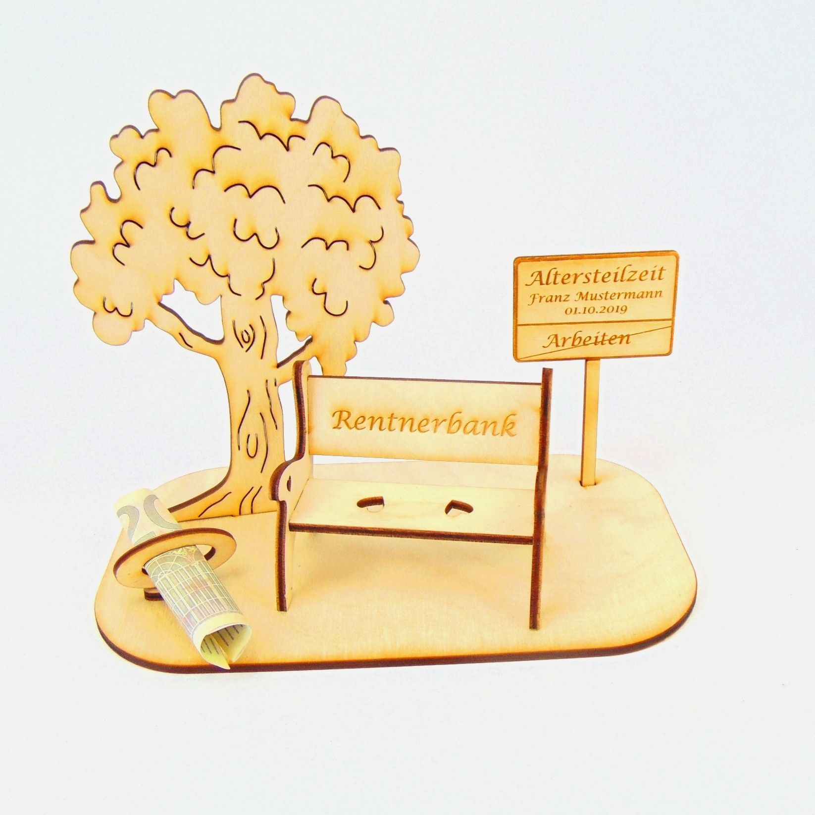Rentner Bank XXL Geldgeschenk aus Holz Personalisiert -K14-