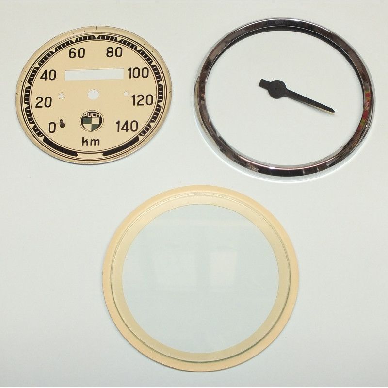 Reparatur-Set MB 140 für VDO-Tachometer Puch. Bestehend aus: Chromring, Glas mit Fassung, Zeiger und Zifferblatt. Dies ist ein Angebot von: NSU- Schönhaar Wir haben ständig über 200.000 neue und gebrauchte NSU-Teile und Literatur am Lager. Besuchen Sie uns auf unserer Internetseite. Offer by: NSU -