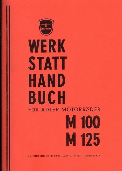 Adler Reparaturanleitung ADLER Motorräder, M 100 mit 3,75 PS M 125 mit 6,8 PS