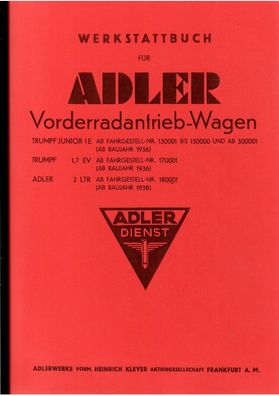 • Werkstatthandbuch für Adler Trumph Junior und Adler 2,5 Ltr mit 16 und 17 Zoll Rädern