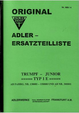 • Ersatzteilliste Adler Trumph Junior Typ 1 E, Oldtimer, Klassiker