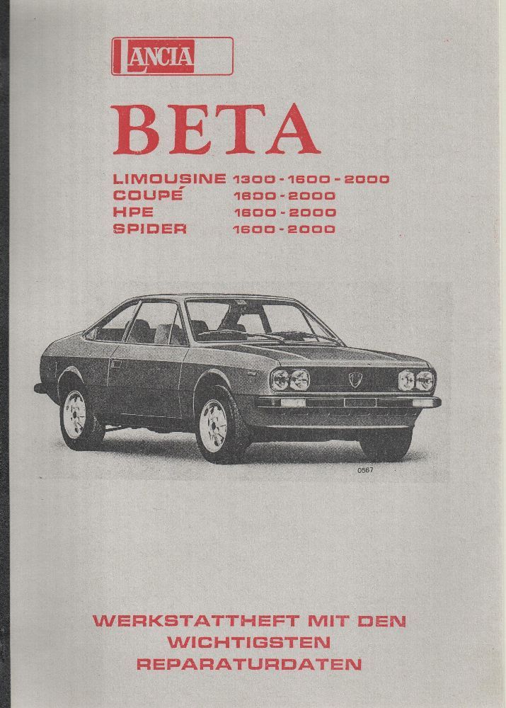 Reparaturanleitung Lancia Beta Limousine 1300ccm , 1600 ccm , 2000 ccm
