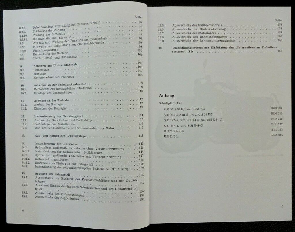 Reparaturanleitung Simson S51 und KR 51/2 mit elektrischen Schaltplänen IFA