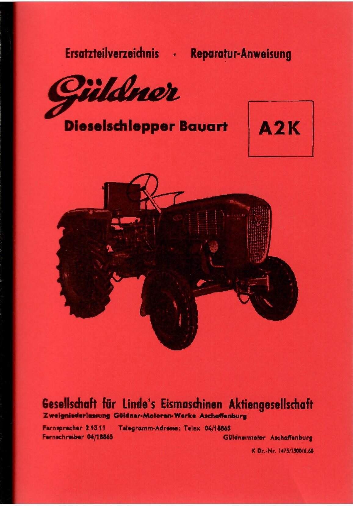 Reparaturanleitung und Ersatzteilliste Güldner Dieselschlepper, Trecker, Traktor