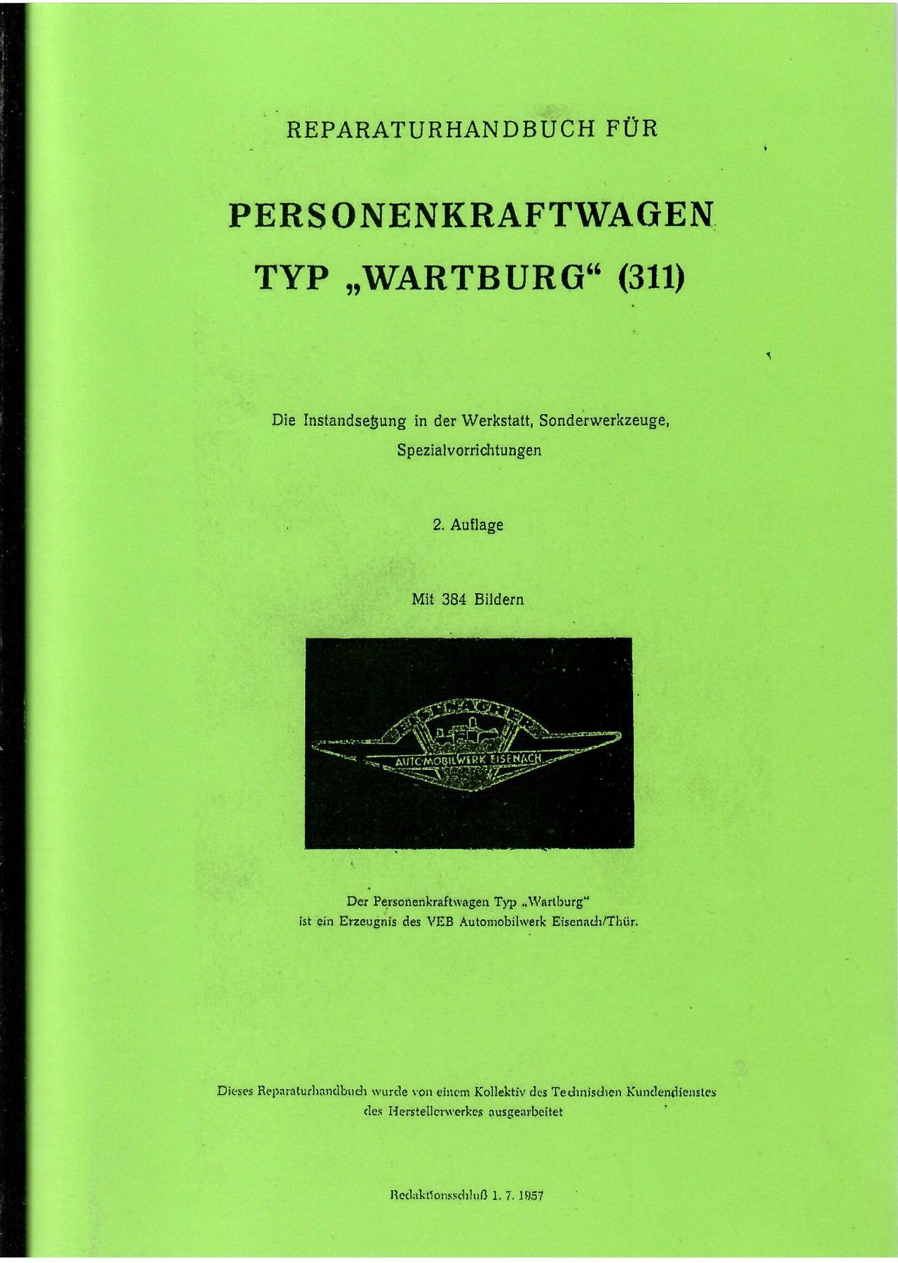 Reparaturanleitung Wartburg Typ 311-0 Standart und Sport, 900 ccm, 38 PS und 50 PS