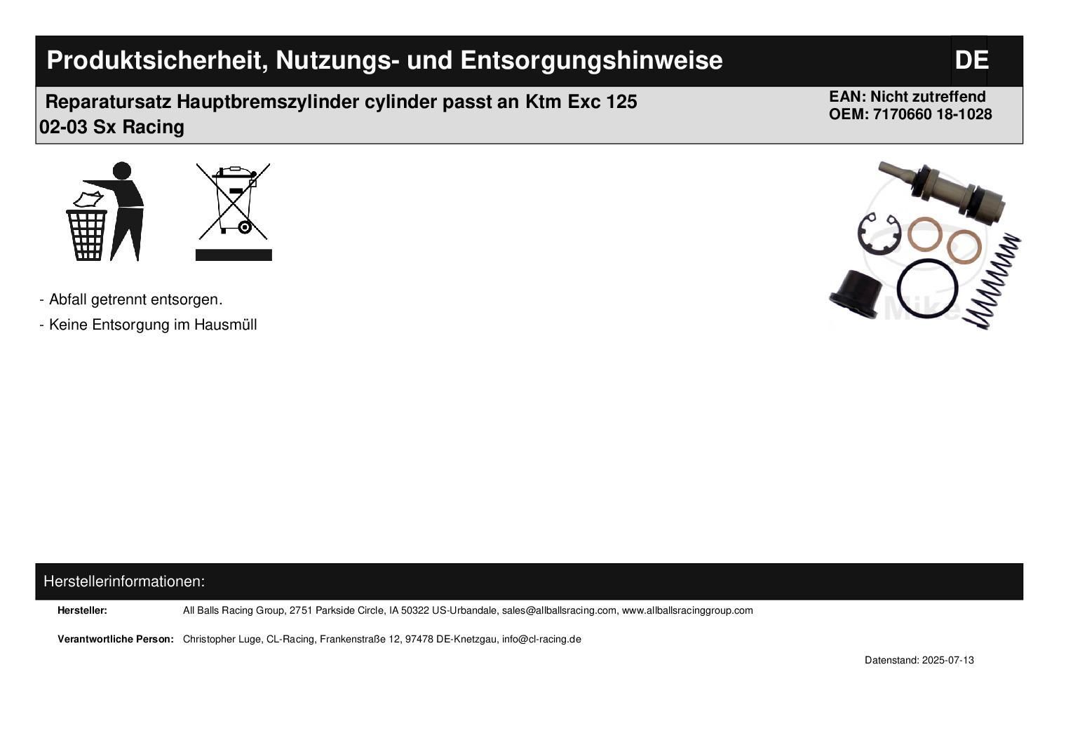 Reparatursatz Hauptbremszylinder cylinder passt an Ktm Exc 125 02-03 Sx Racing