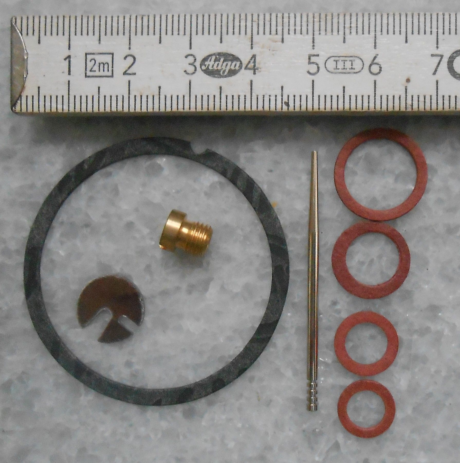 Simson Vergaser Reparaturset für KR50 die roten sind Fiberdichtungen 8-teilig 1 x Vergaserdichtung 1 x Hauptdüse M6 x 0,75 1 x Teillastnadel 1 x Nadelplättchen 4 x Dichtung