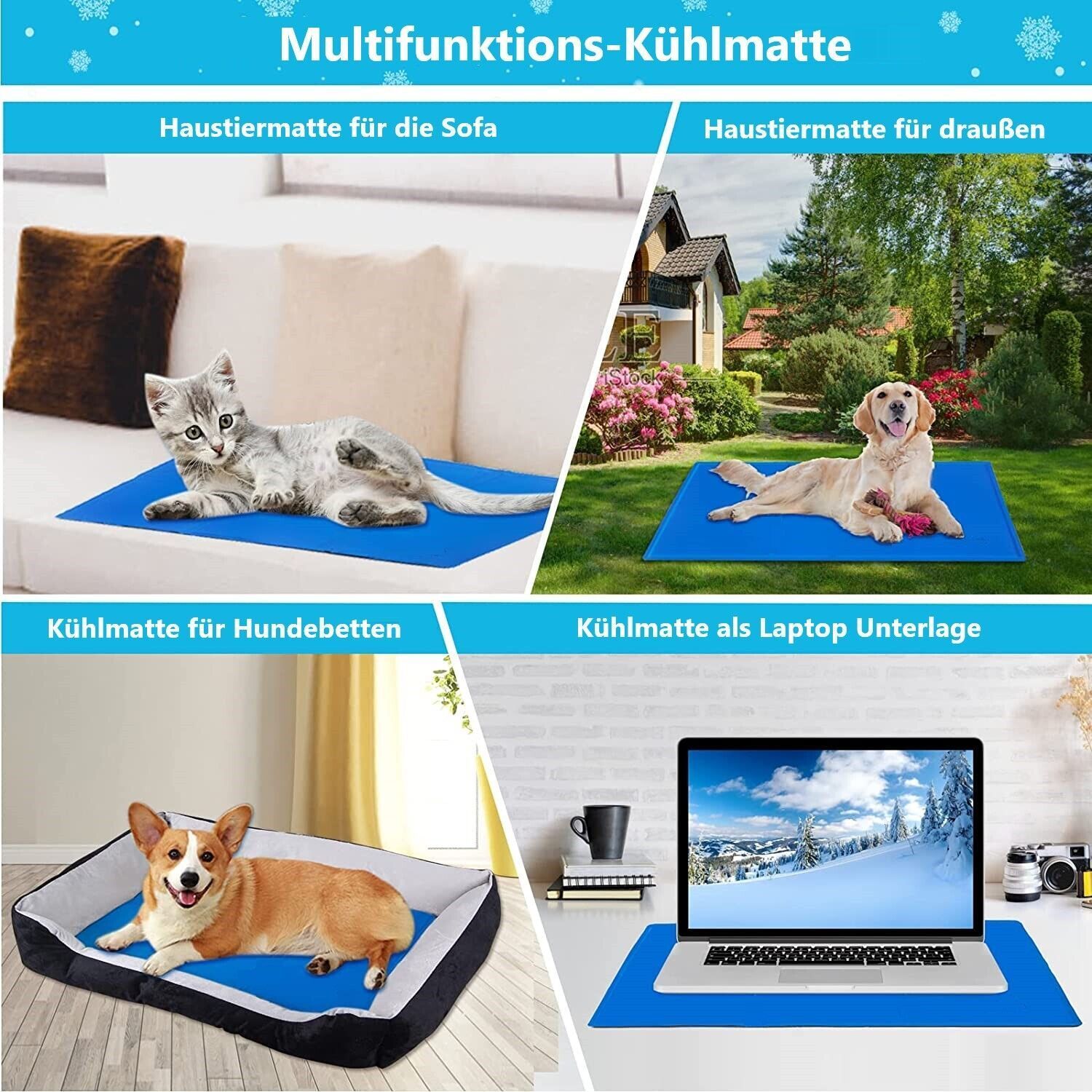 • Resch Kühlmatte für Hunde, Katzen & Menschen - 50 x 65cm, elbstkühlende Gelmatte