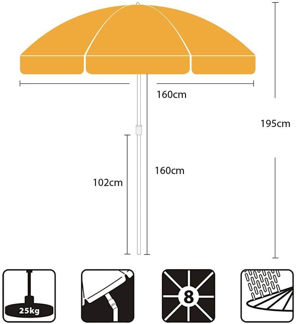 RESCH RESCH Sonnenschirm Strand Orange 200 Cm UV50+ Gartenschirm, Strandschirm, Garten