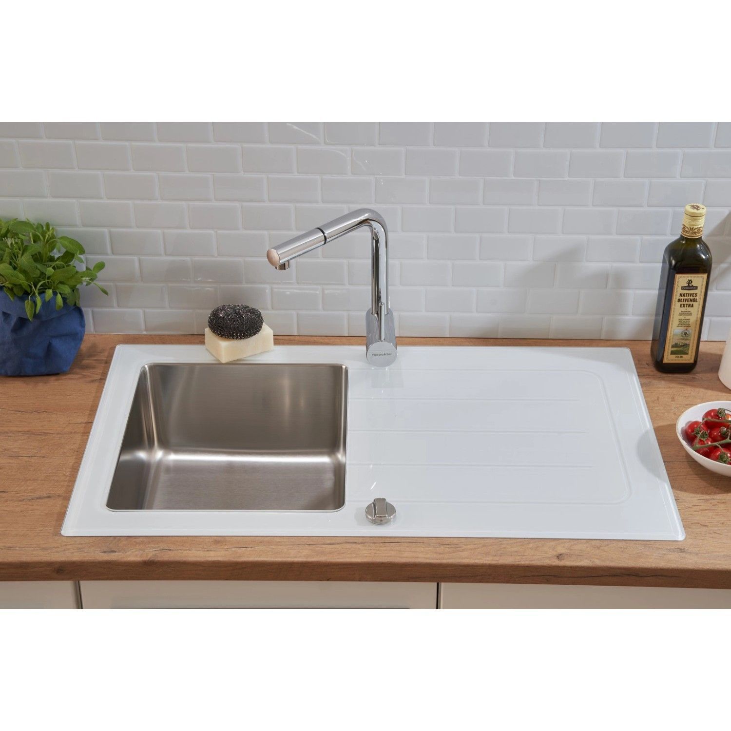 Glas-Edelstahl Einbauspüle: