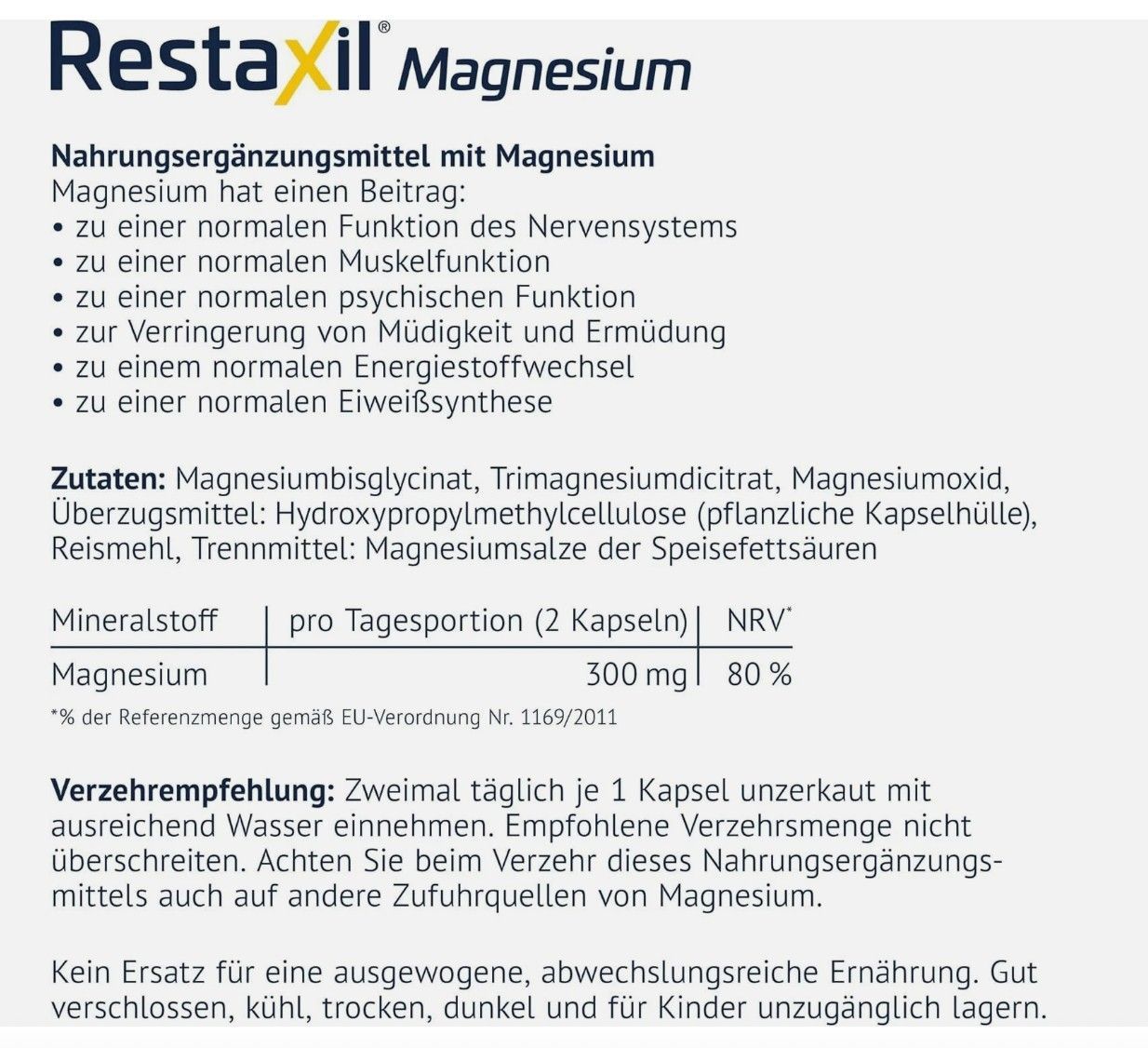 Restaxil Magnesium Premium-Komplex-Bisglycinat, aborgeprüft, ohe Bioverfügbarkei