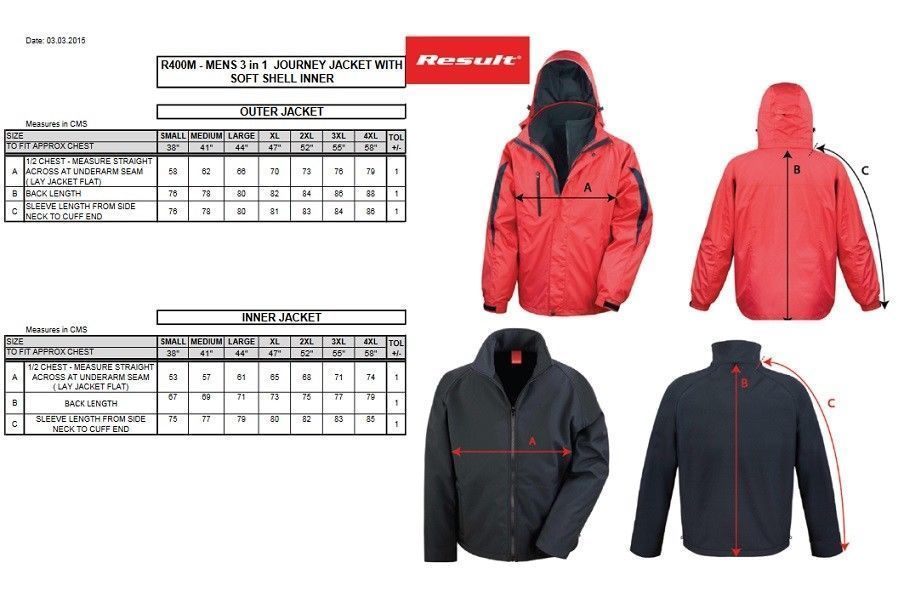 Result Mens 3 in 1 Soft Shell Journey Jacket Softshell S - 4XL RT400