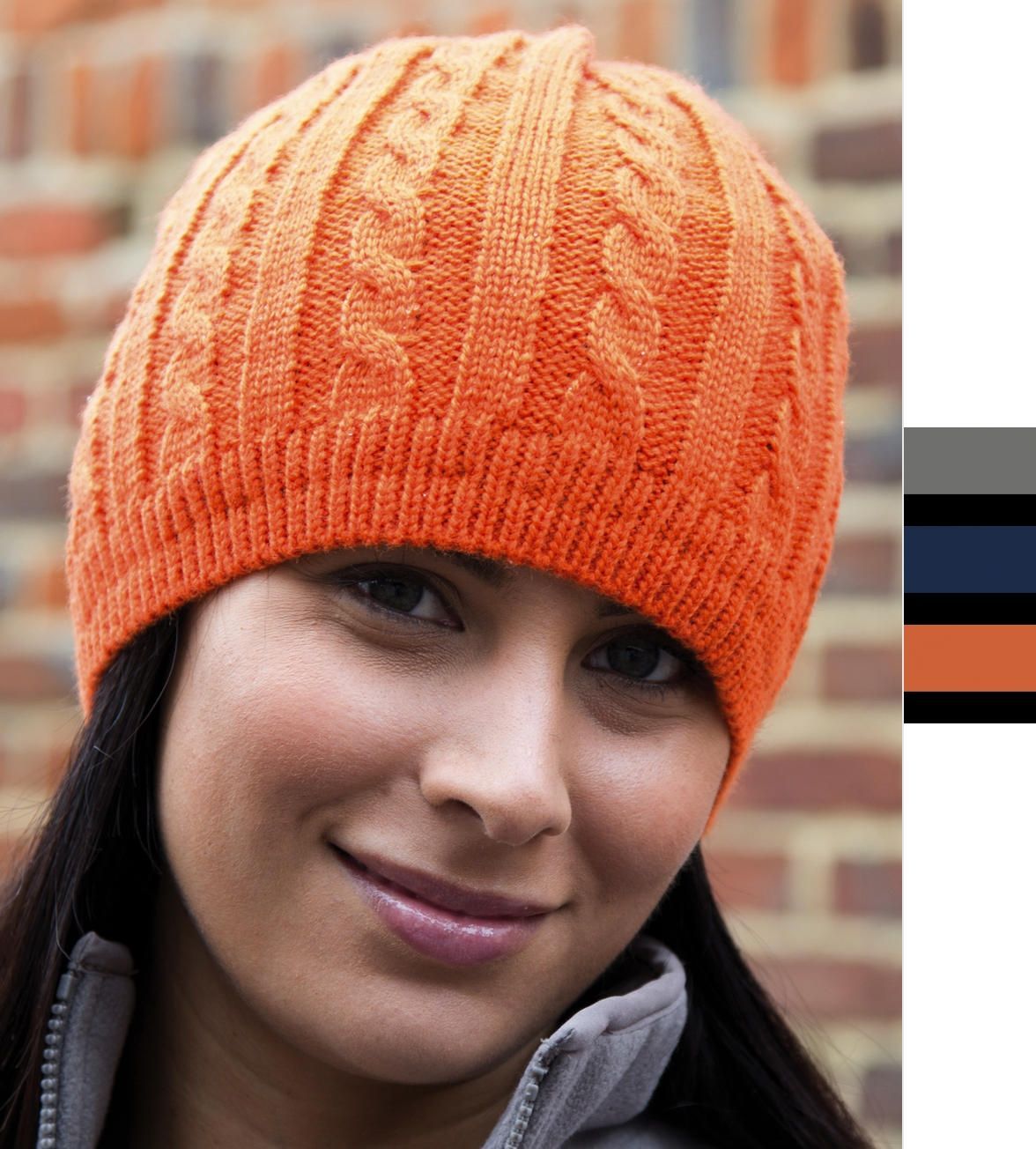 Result warme Winter Beanie Strick Mütze Zopfmuster Mariner Knitted R370X NEU