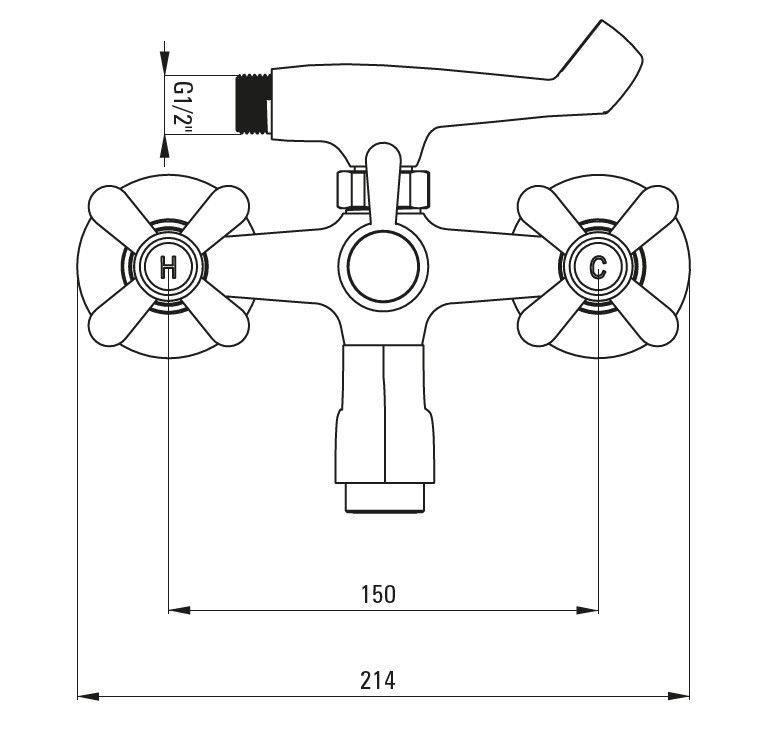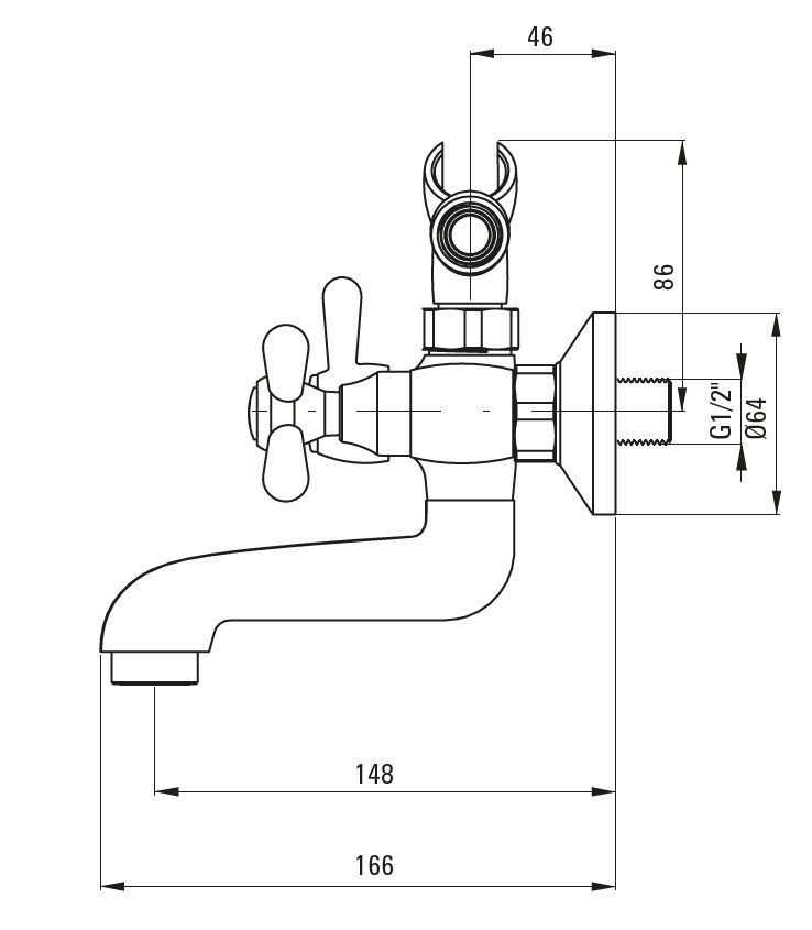 Retro Badewannenarmatur Badarmatur Aufputz Zweigriffmischer mit Duschset, verchromt
