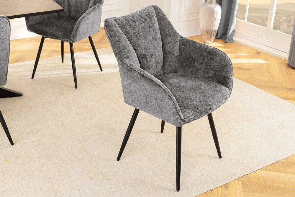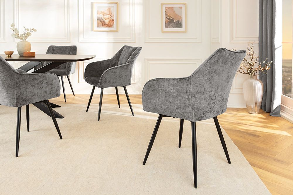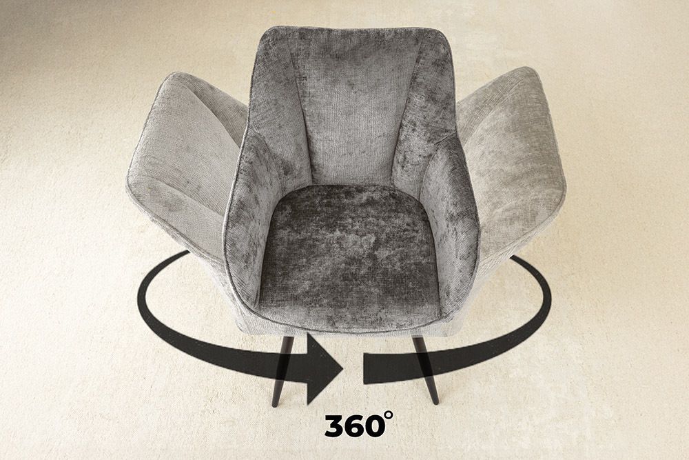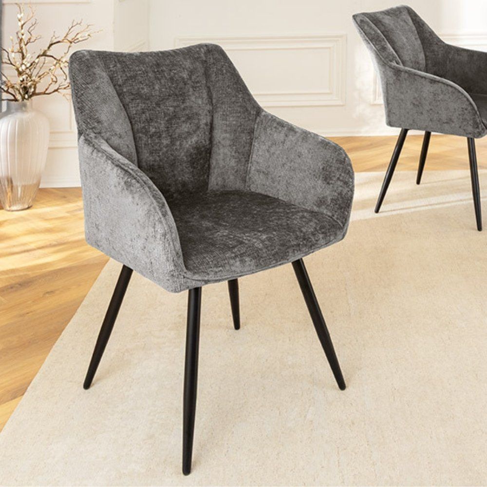 Retro Drehstuhl Papillon grau Chenille schwarz Metallgestell Armlehne
