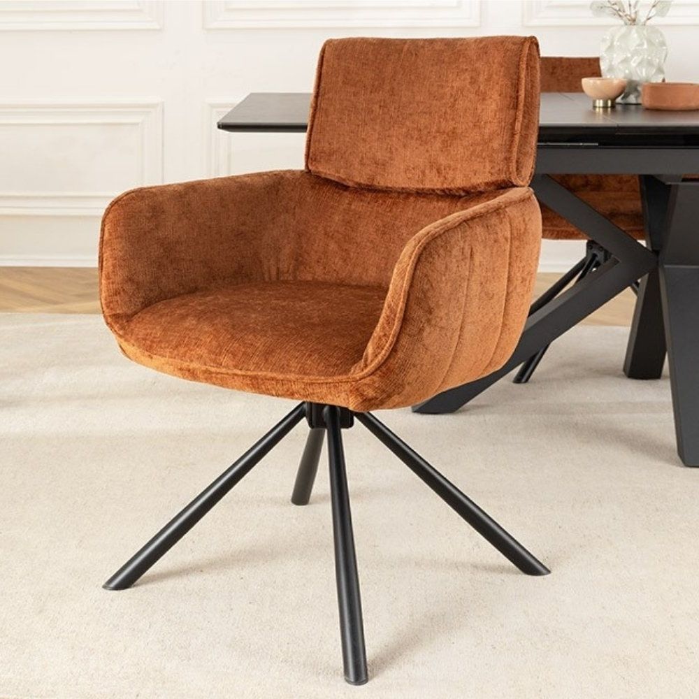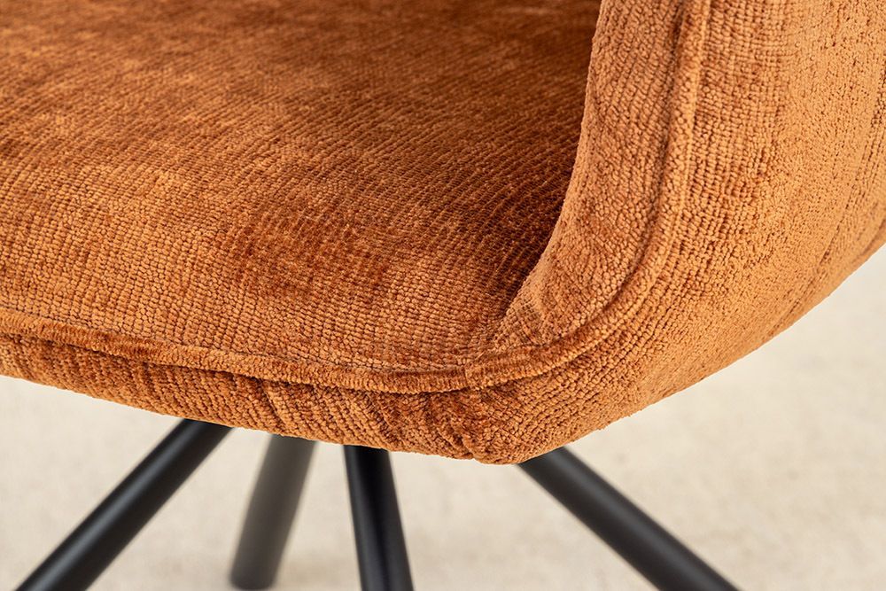 Retro Drehstuhl UNICO rost-braun Chenille schwarzes Metallgestell Armlehne