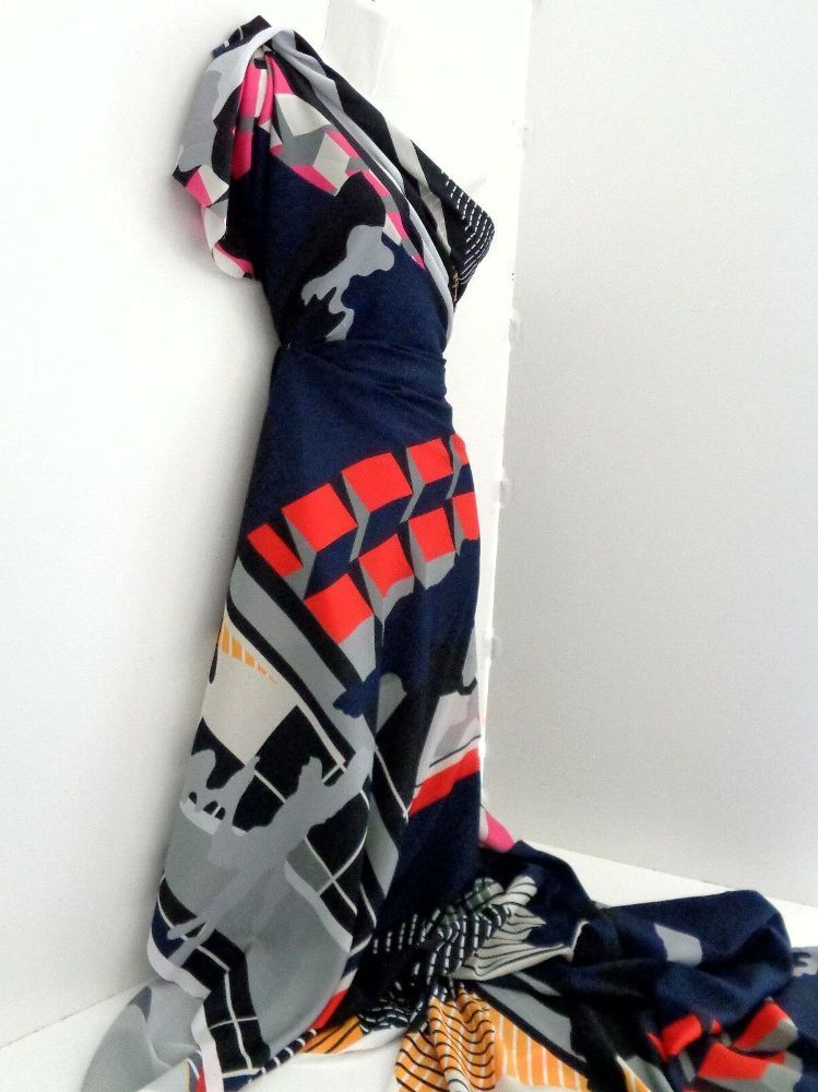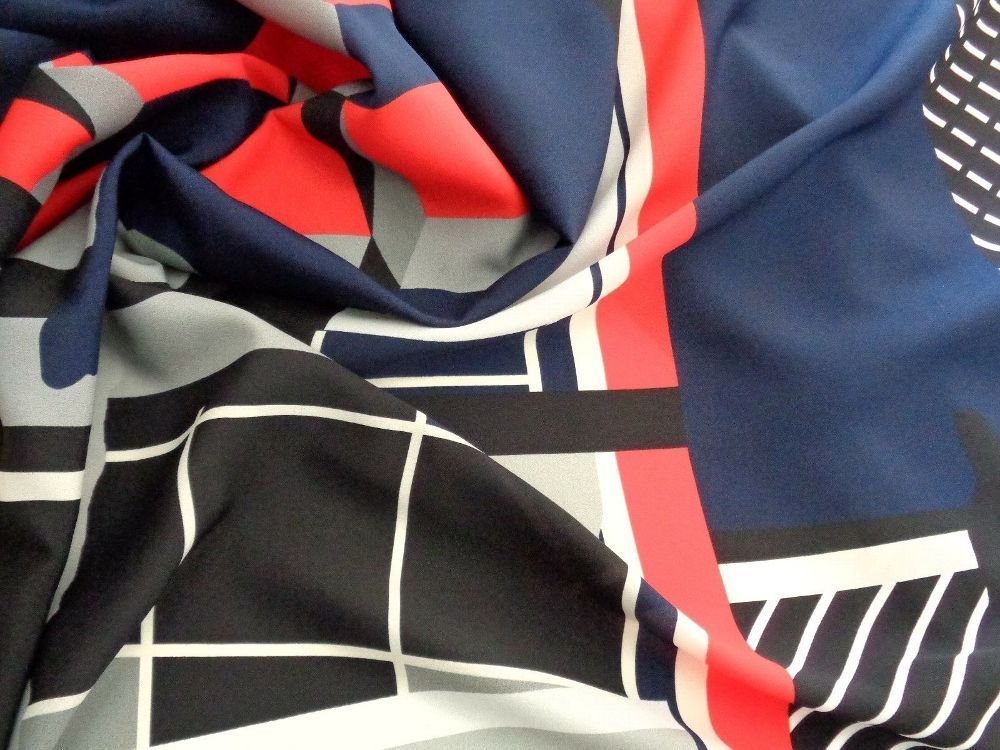 RETRO Georgette , Meterware, Kleiderstoff, dunkel blau, hellrot
