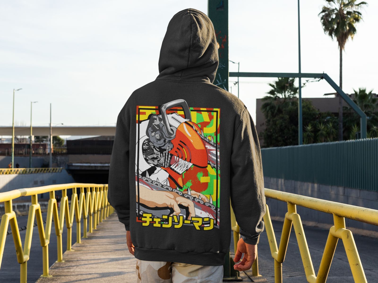 Retro Öko Herren Hoodie - Anime Manga Chainsaw Man Denji Cosplay Hol dir den ultimativen Retro-Look und zeige deine Leidenschaft für Chainsaw Man mit diesem einzigartigen Öko Herren Hoodie . Dieser Hoodie kombiniert ein stylisches Retro-Design mit einem umweltfreundlichen Ansatz und ist perfekt für