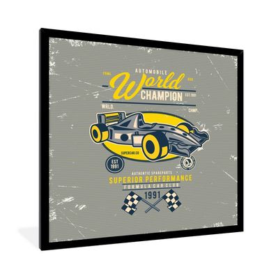 Poster - 40x40 cm - Rennwagen - Flagge - Retro