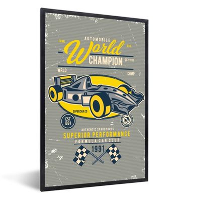 Poster - 60x90 cm - Rennwagen - Flagge - Retro - Grau
