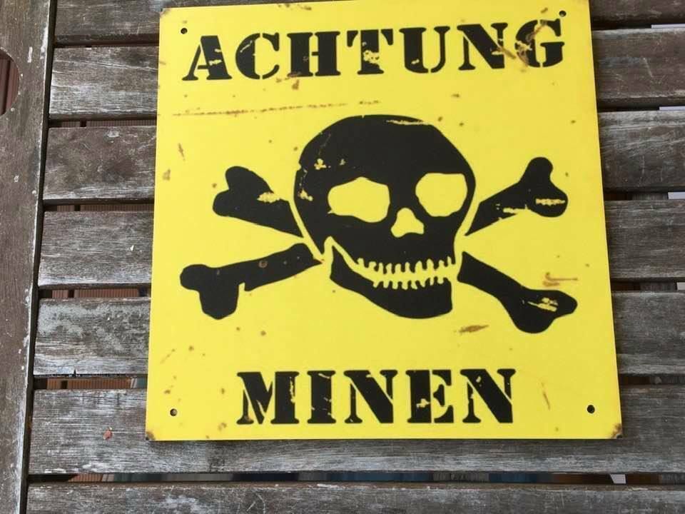 retro Skull Schild: Achtung Minen 24x24 cm Retro Wehrmacht WK1 WK2 shabby