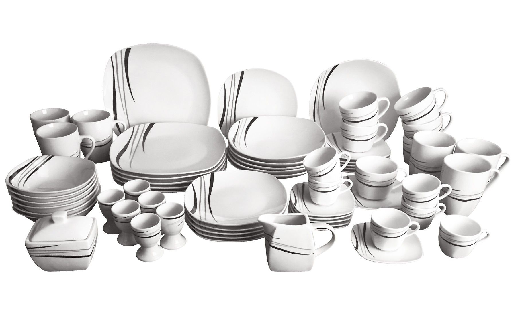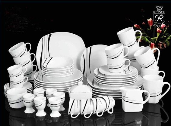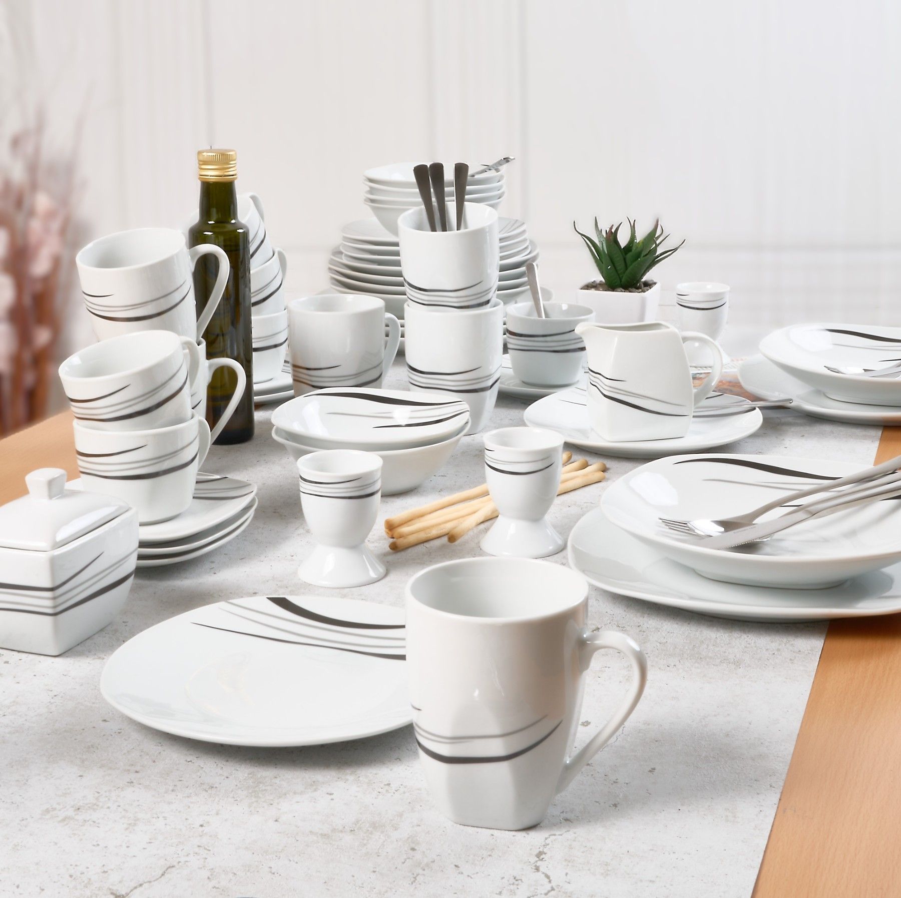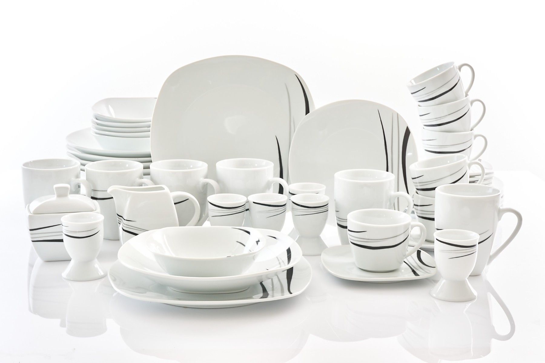 Retsch Arzberg COSMOS Kombigeschirr 62teilig für 6 Personen Porzellan eckig mit Dekor